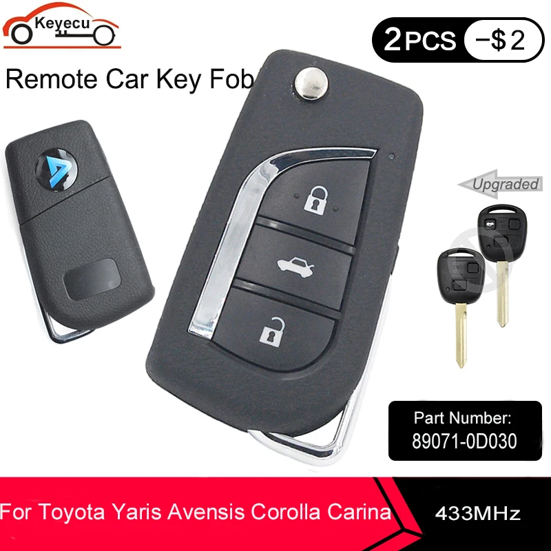 KEYECU Модернизированный дистанционный ключ для Toyota Yaris Avensis Corolla Carina, Fob 2 3 кнопки 433,92 МГц ID4D66 чип P/N: 89071-0D030