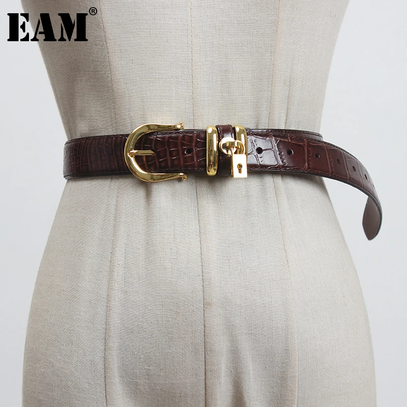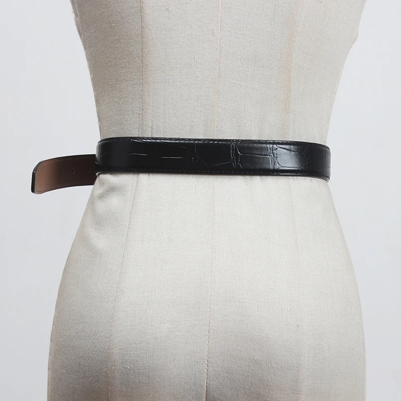 EAM женский длинный широкий ремень из искусственной кожи с пряжкой, черный, с разрезом, новинка, модный, подходит ко всему, весна-осень 2022, 1DC744