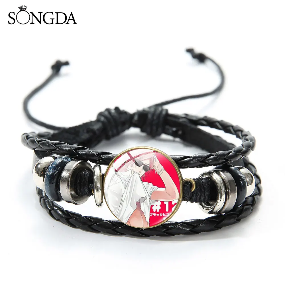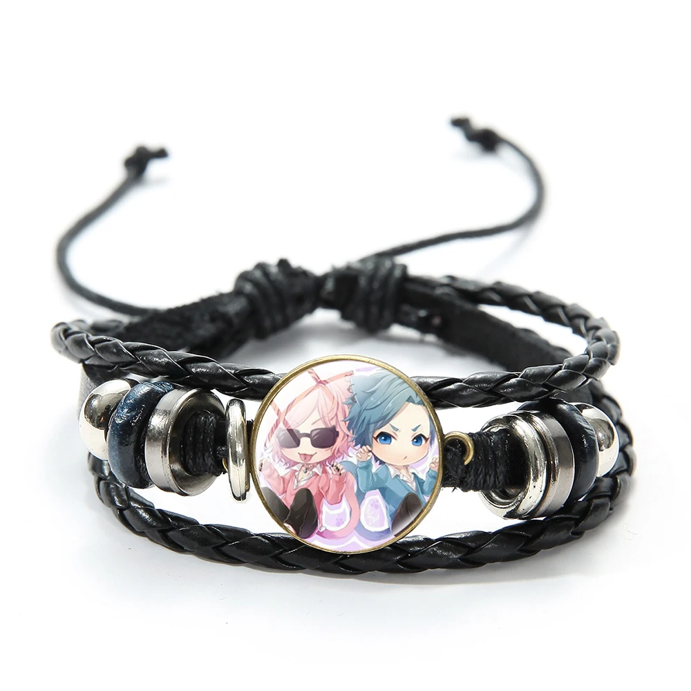 Многослойный кожаный браслет yarigin Club для косплея, черный браслет ручной работы со стеклянной купольной пряжкой с мультяшным принтом, регулируемые браслеты