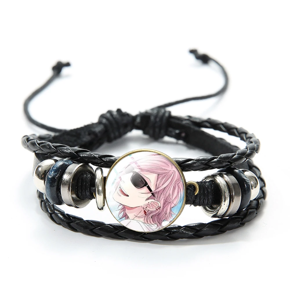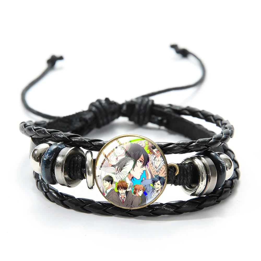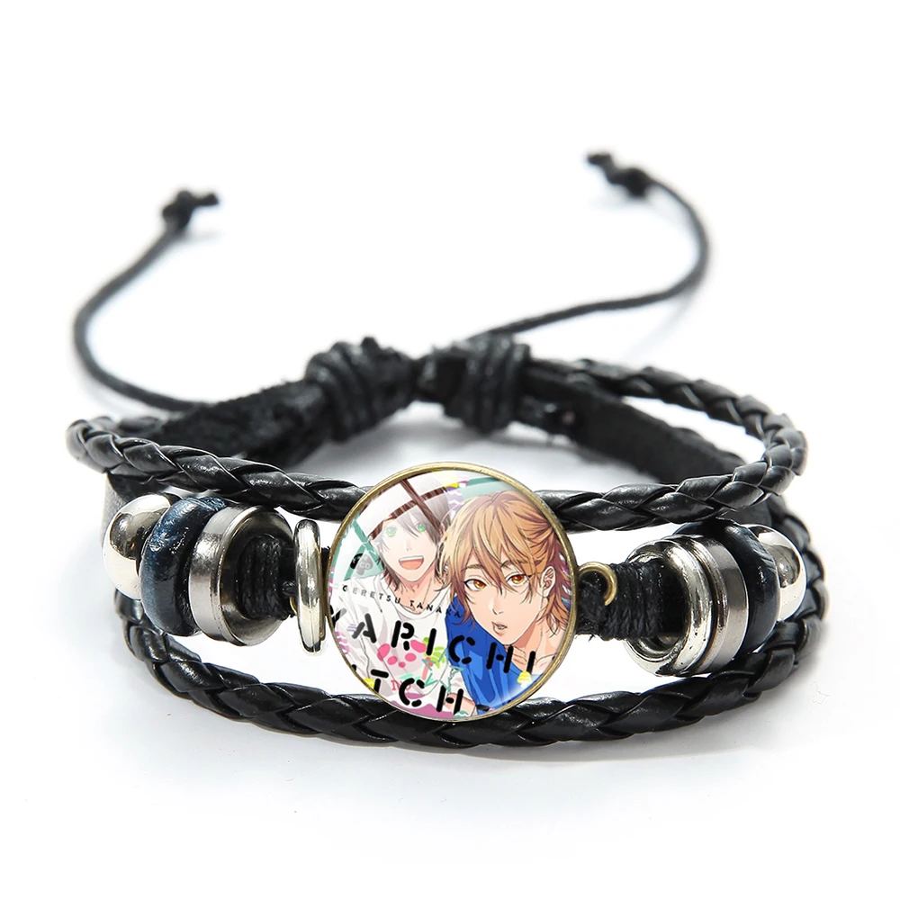 Yarichin сука-бу клуб Косплей Черный Многослойный кожаный браслет ручной работы мультфильм печатных стекло купол пряжки регулируемые браслеты