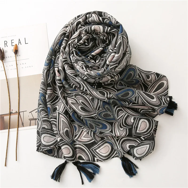 Маска для лица шарфы для женщин Модный дизайн длинный черный геометрический узор головной шарф повязка на голову снуд мусульманский хиджаб снуд