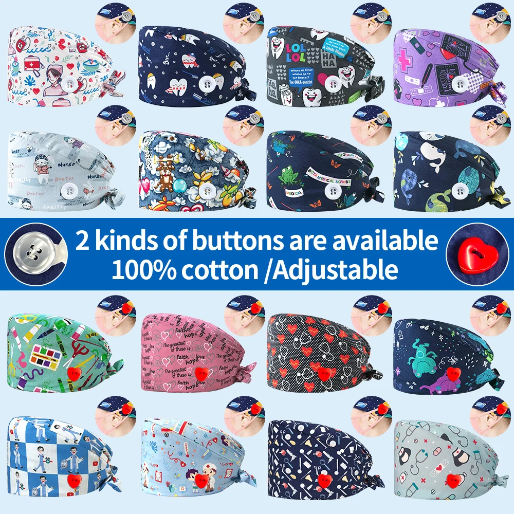 Шапка для медсестры с цветочным узором, регулируемая шапка с разным...