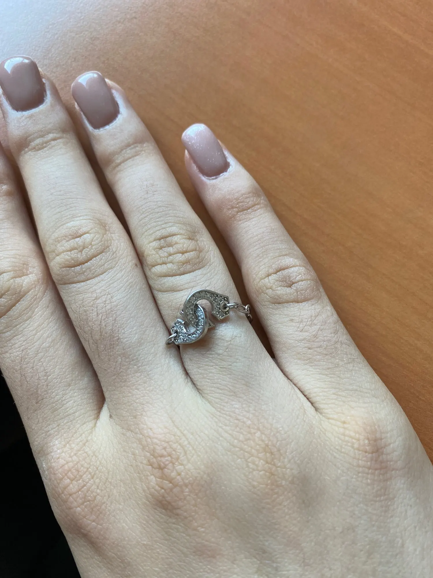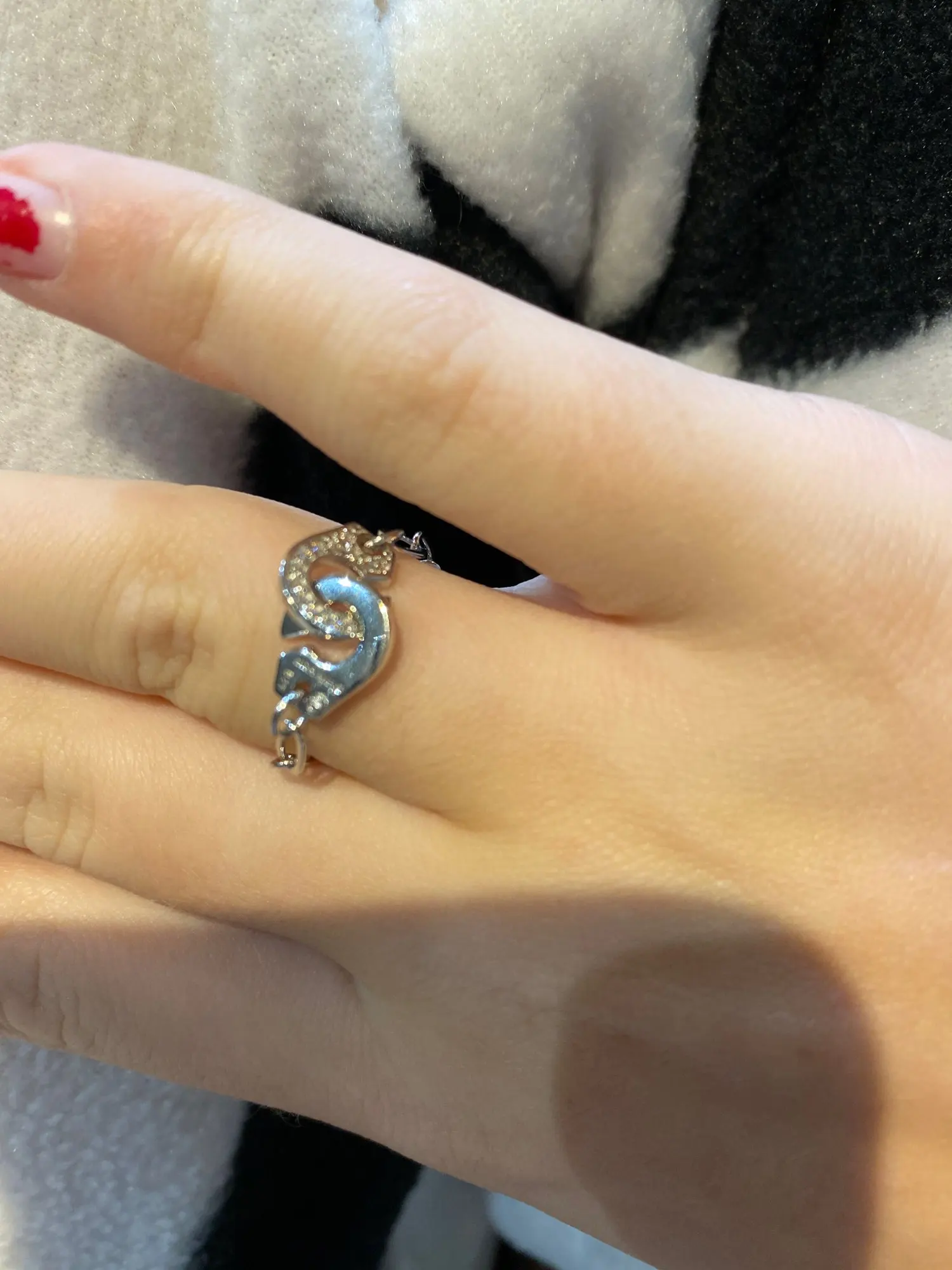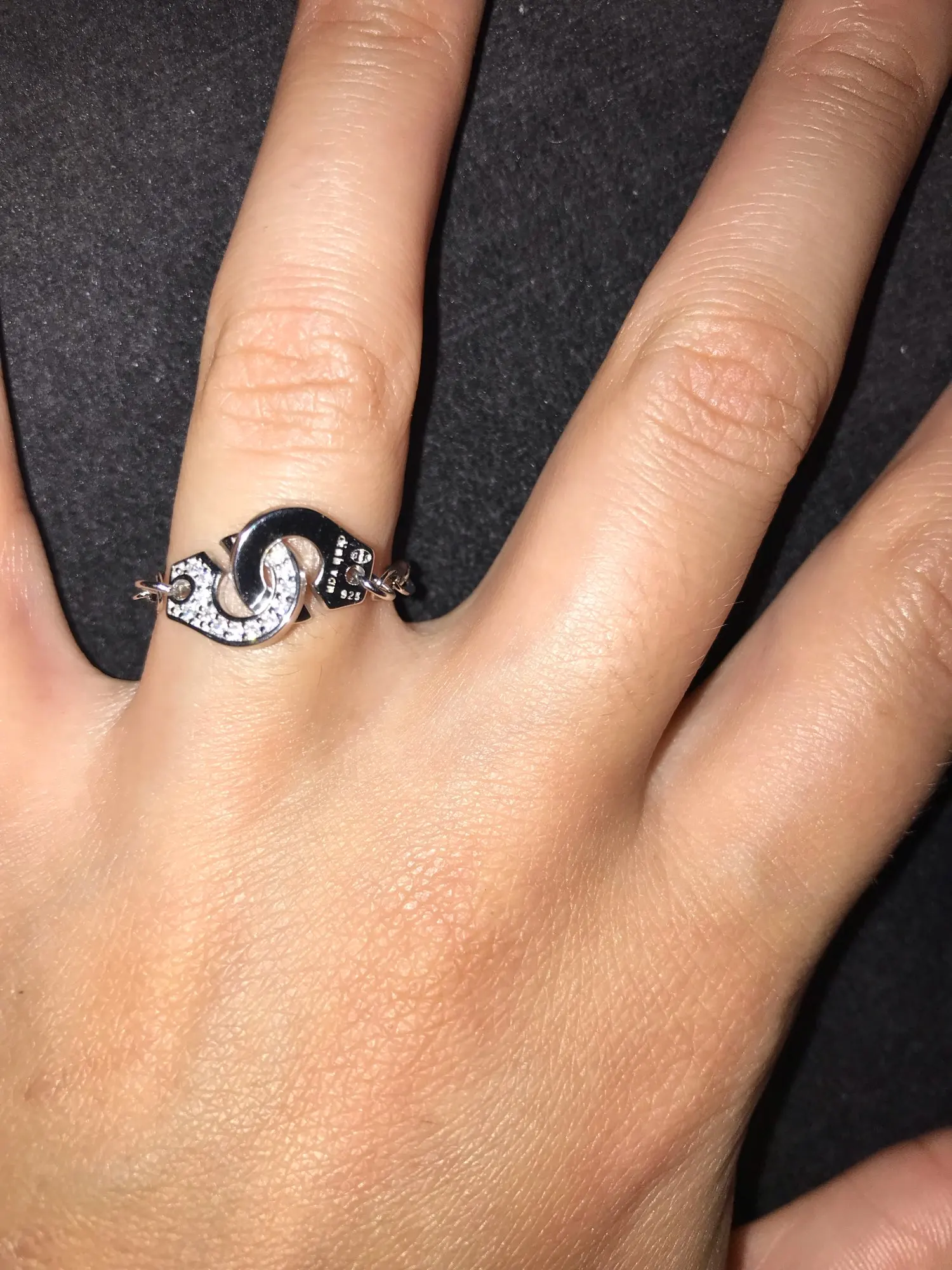 Очень красивое блестящее металлическое кольцо, съемная нить, надпись Messika выгравирована внутри кольца. И размер, соответствующий моим тонким пальцам.