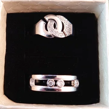 Почти идеально!! Я полностью побежден! Хорошо и хорошо закончено. Три маленьких бриллианта посередине движутся (но смонтированы на квадратной форме, которая не портит красоту этого кольца). Надпись и маленькая СТРАЗА внутри кольца. Чтобы увидеть, как это длится со временем! Я рекомендую!! Доставлено во Францию менее чем за 3 недели