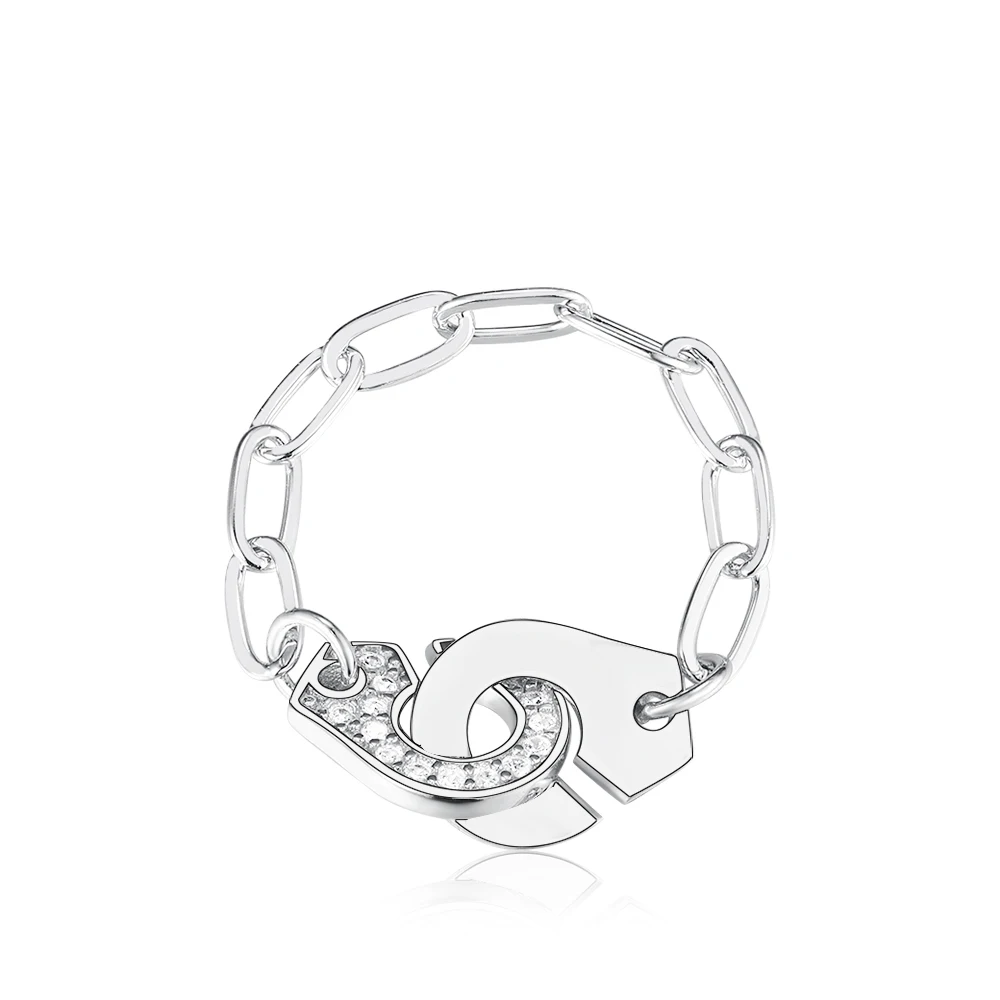 Действительно быстрое серебряное кольцо-наручник с маленькой цепочкой-наручником для женщин и мужчин, популярное ювелирное изделие, мужское кольцо
