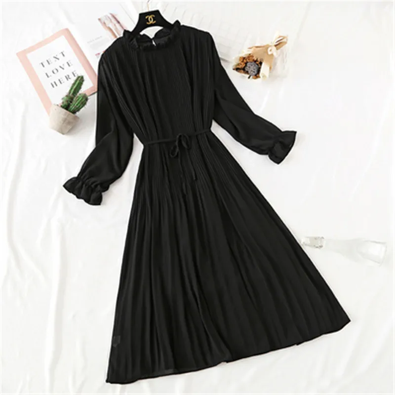 Женское шифоновое платье с принтом, плиссированное Повседневное платье с расклешенными рукавами и воротником в виде листьев лотоса, базовое платье 20, Новинка лета-осени 2020