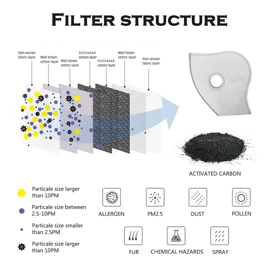 Feature 2Activated Carbon Dustproof Mask with filter and valve