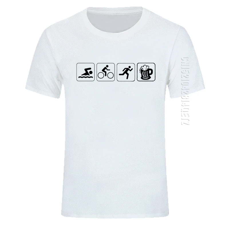 Новая летняя мужская футболка Триатлон плавать велосипед бегать и пива негабаритных круглый вырез горловины с оборками, хлопковые футболки с принтом Модные Графический Топы И Футболки Для Женщин