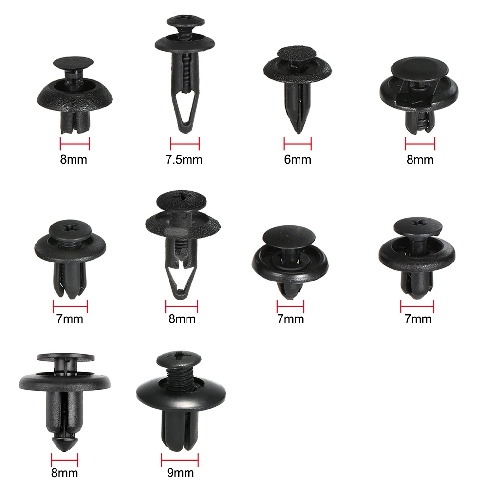 Особенности:Давление на столб заклепки расширяет ножки для быстрого и постоянного крепления.Изготовлен из высококачественного материала, крепится более плотно, высокая стабильность.10 видов застежек удовлетворят ваши различные потребности.Вставьте женскую часть в отверстие, протолкните мужскую часть в нижнюю, закрытое положение.Экономьте свое время и деньги. Не нужно обращаться в магазин автозапчастей за разными зажимами.Спецификация:Материал: пластикПодходящее отверстие: 6 мм, 7 мм, 7,5 мм, 8 мм, 9 ммРазмер посылка: прибл. 12,5*9,5*5 см/4,92*3,74 * 1.97inВес посылка: 118,4 г/4,17 унцииПосылка тация:100 * крепежный зажим