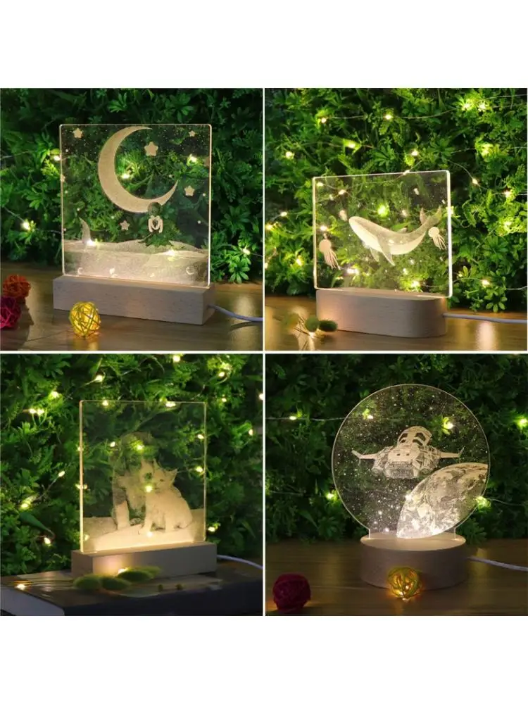 Хрустальное стекло для художественного оформления, ручная работа, резьба по дереву, светодиодный дисплей, теплая ночная подсветка, M89B