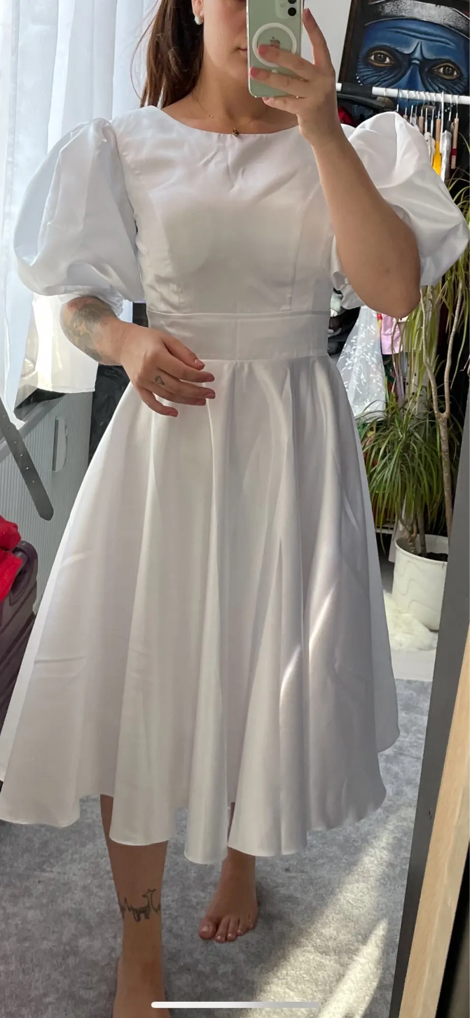 Женское Короткое свадебное платье It's yiiya, Белое Атласное ТРАПЕЦ...