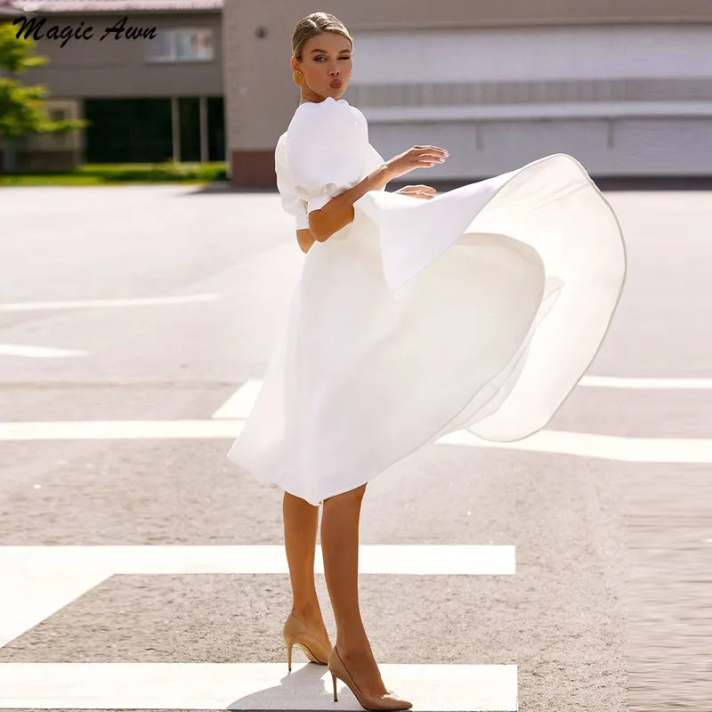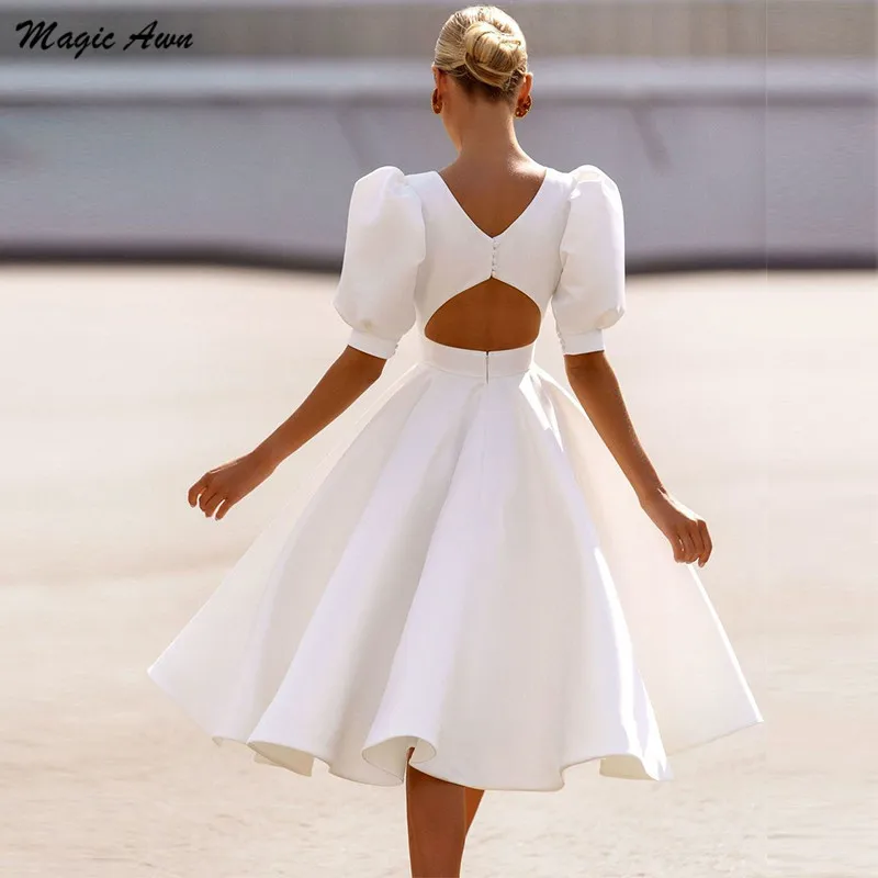 Платье Magic Awn женское атласное с коротким рукавом, элегантное пляжное платье-трапеция до колен, свадебные платья Boho в стиле кантри, 2021
