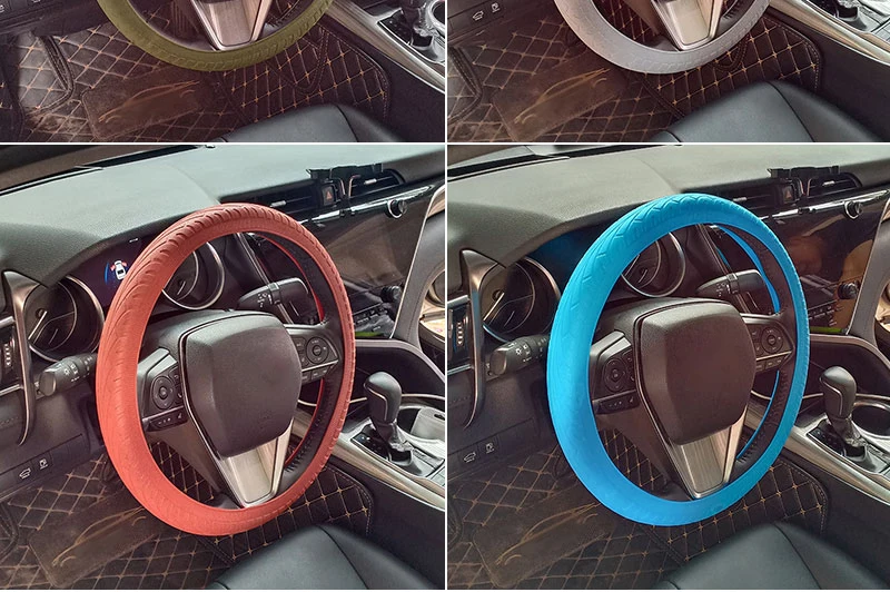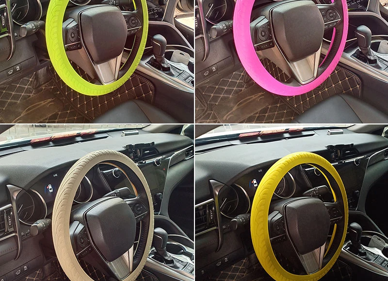 Текстурные мягкие разноцветные мягкие силиконовые чехлы на руль Автомобильные силиконовые чехлы на руль универсальные автомобильные аксессуары