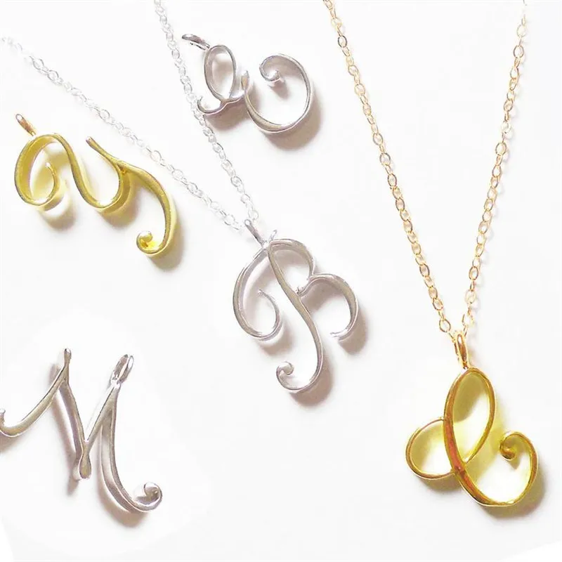 Капитал Курсив первоначального Цепочки и ожерелья, платье подружки невесты, подарок на день рождения, свадьбу подарок Script буква Шарм День матери; Подарок для девочки