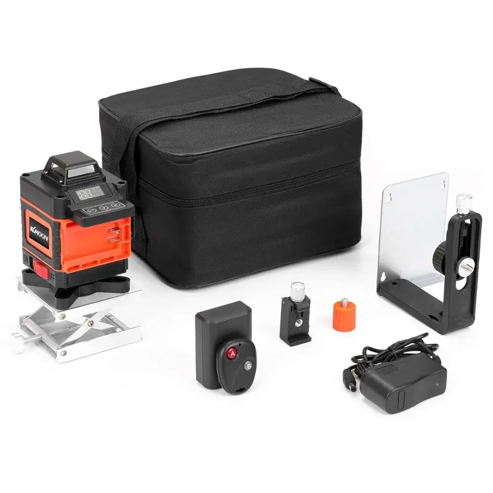 Лазерный уровень KKmoon, самонивелирующийся нивелир с 12 линиями вертикальный и горизонтальный лазер и цифровым дисплеем