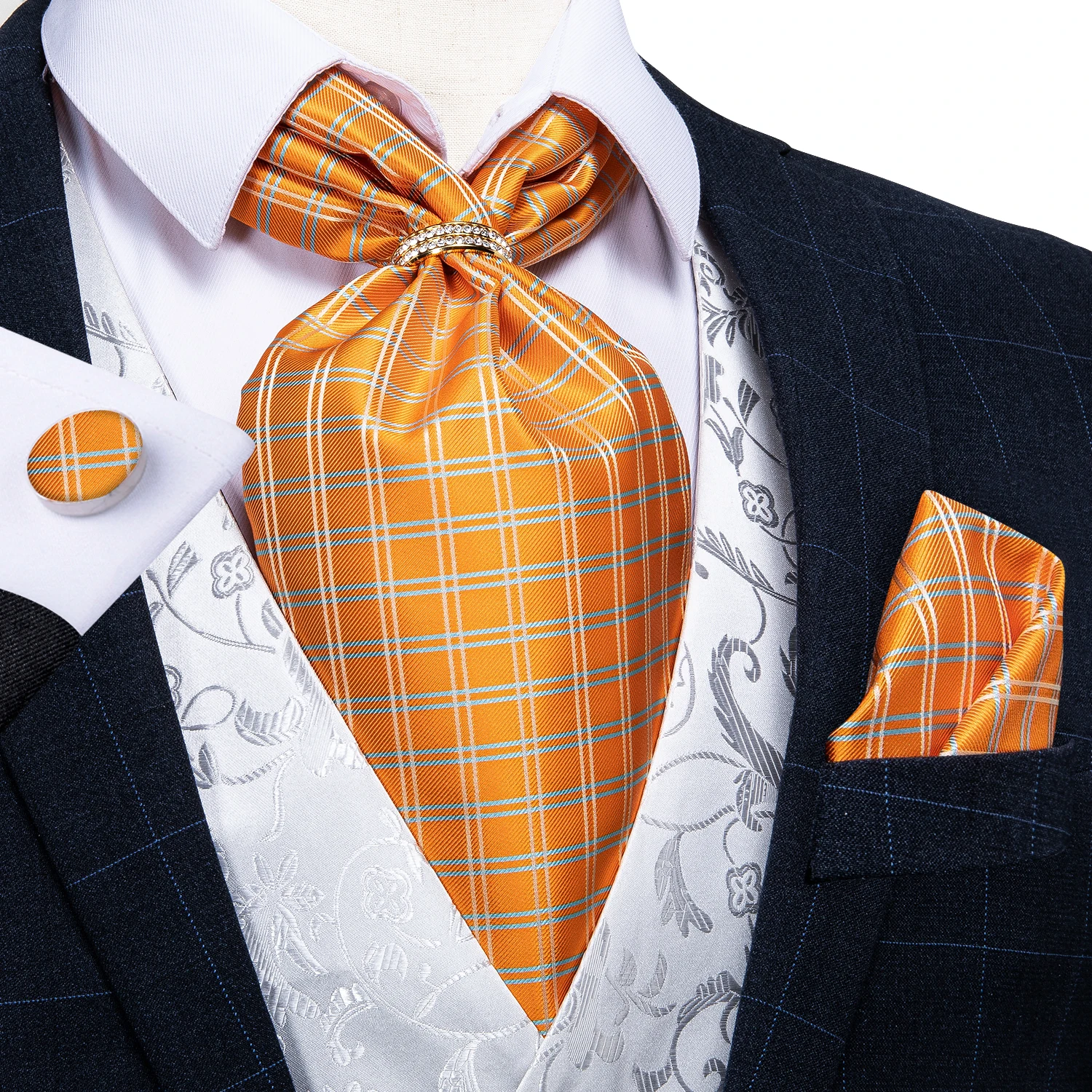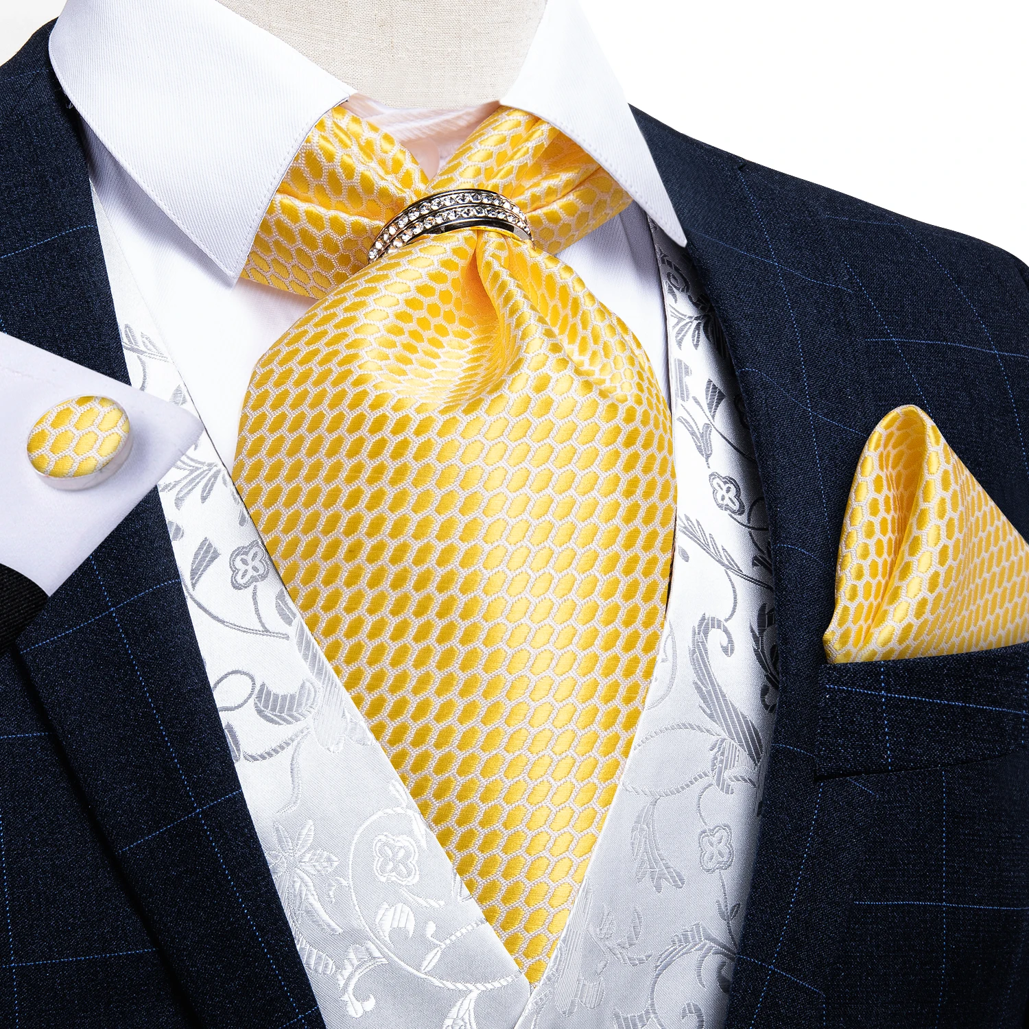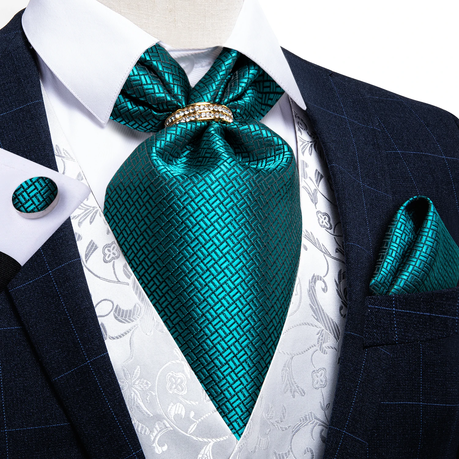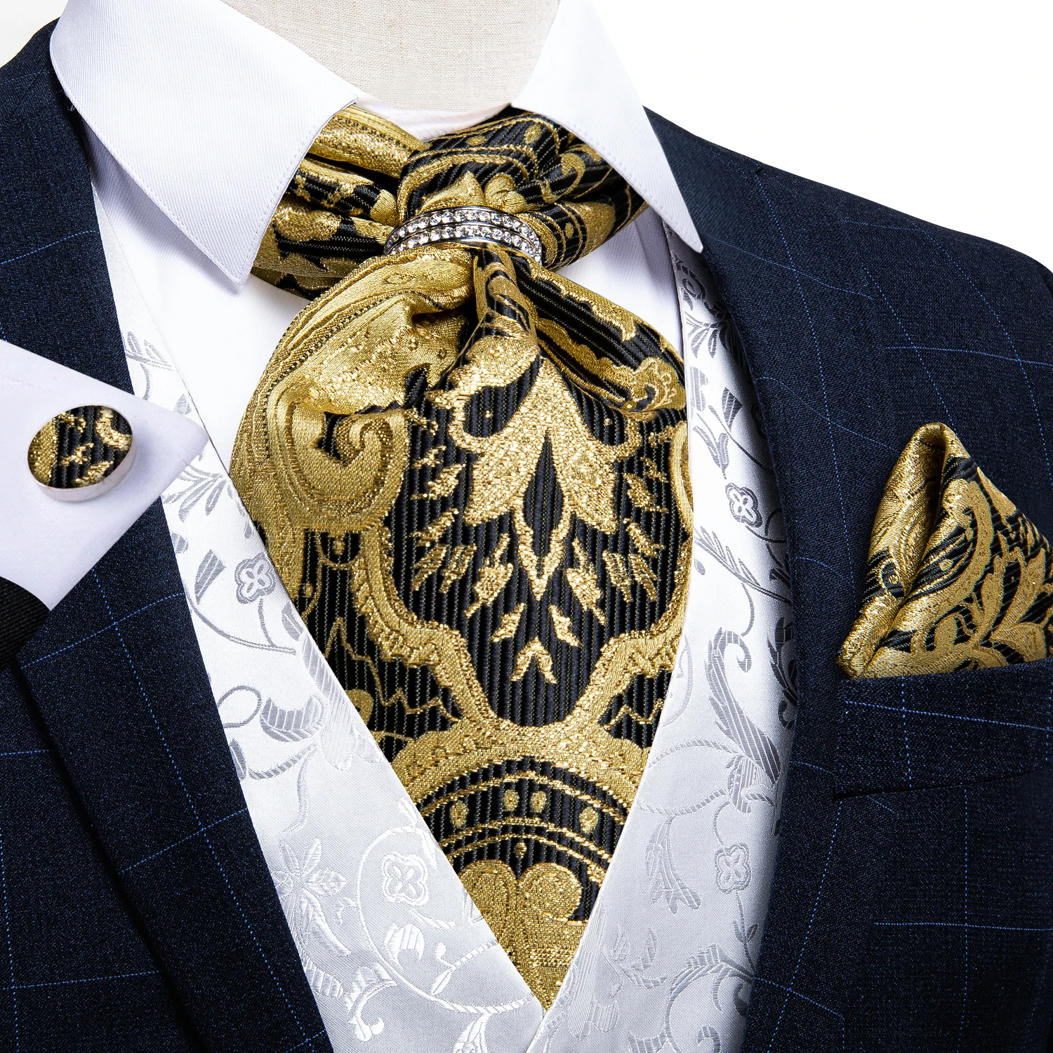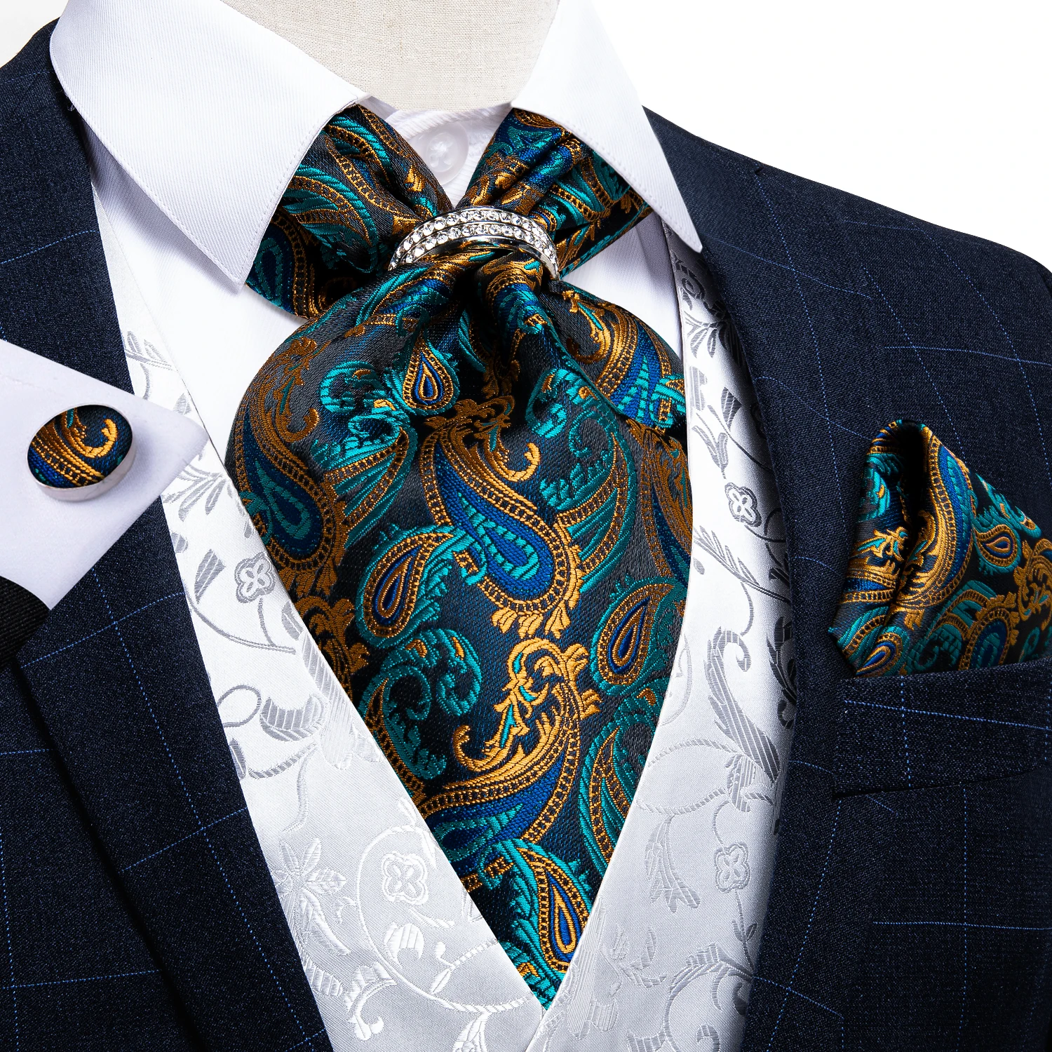 Роскошный Серебряный галстук с пейсли для мужчин, галстук для свадьбы, Официальный галстук, галстук для аскота, самодельный Британский галстук для шеи, набор карманных квадратных запонок DiBanGu