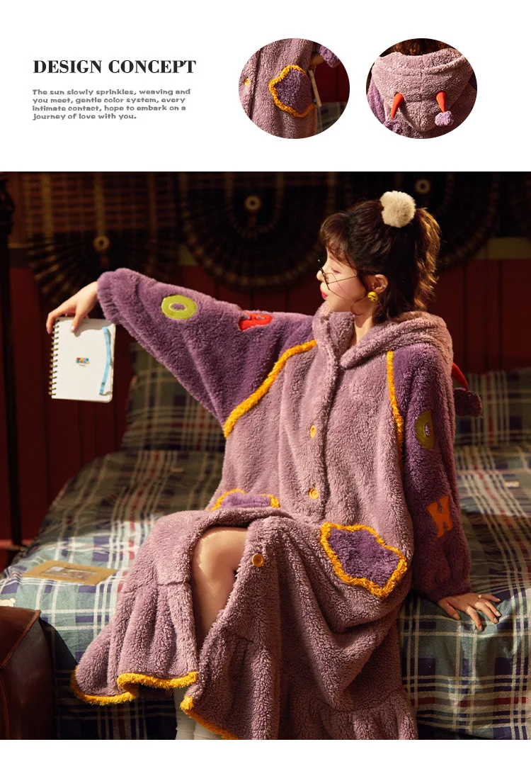 Утолщенная ночная рубашка, женская ночная рубашка из кораллового флиса, милая мультяшная Женская домашняя одежда, пижама, теплый халат, большие размеры