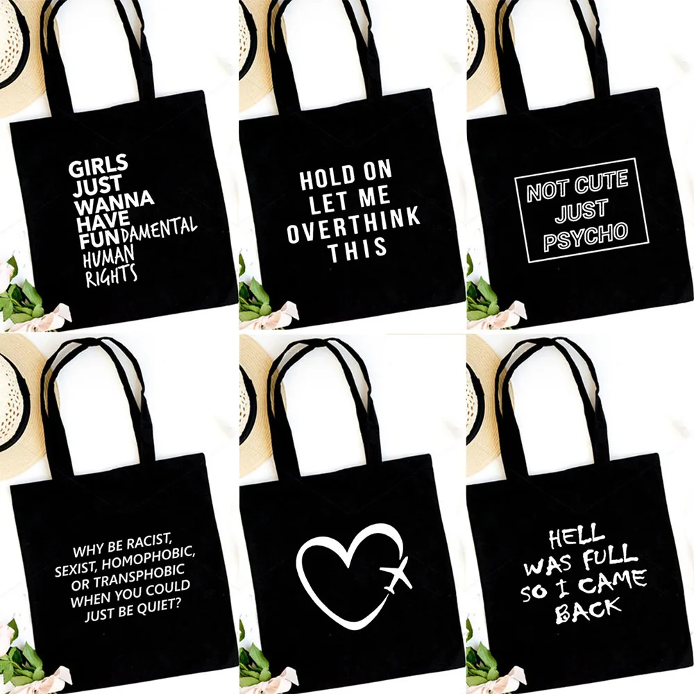 Модная многоразовая сумка для покупок, Женская тканевая сумка-тоут, черная сумка-шоппер, сумка через плечо, винтажная дорожная сумка для учителей, Студенческая Книга в стиле Харадзюку