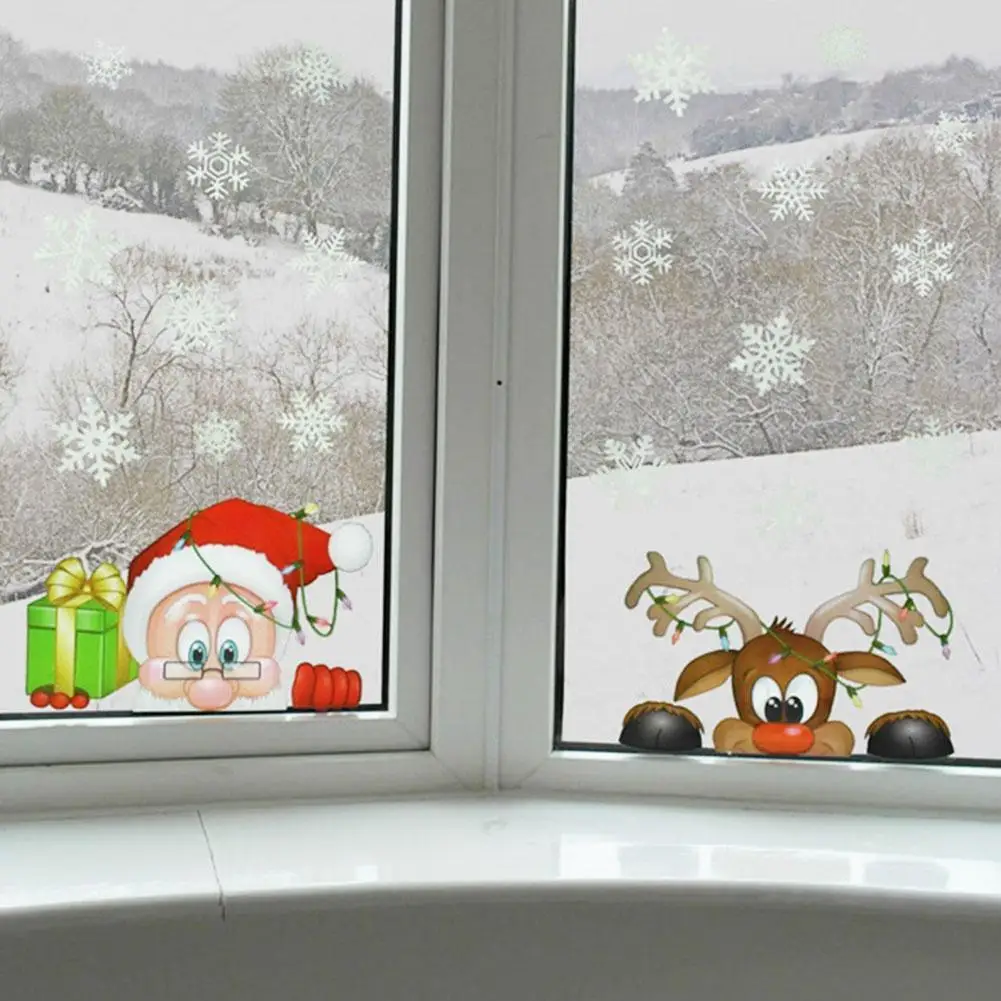 Санта Лось Рождество ПВХ статическая наклейка украшение для дома окна большая наклейка на стену в виде хлопьев новогодвечерние НКА стеклянное украшение