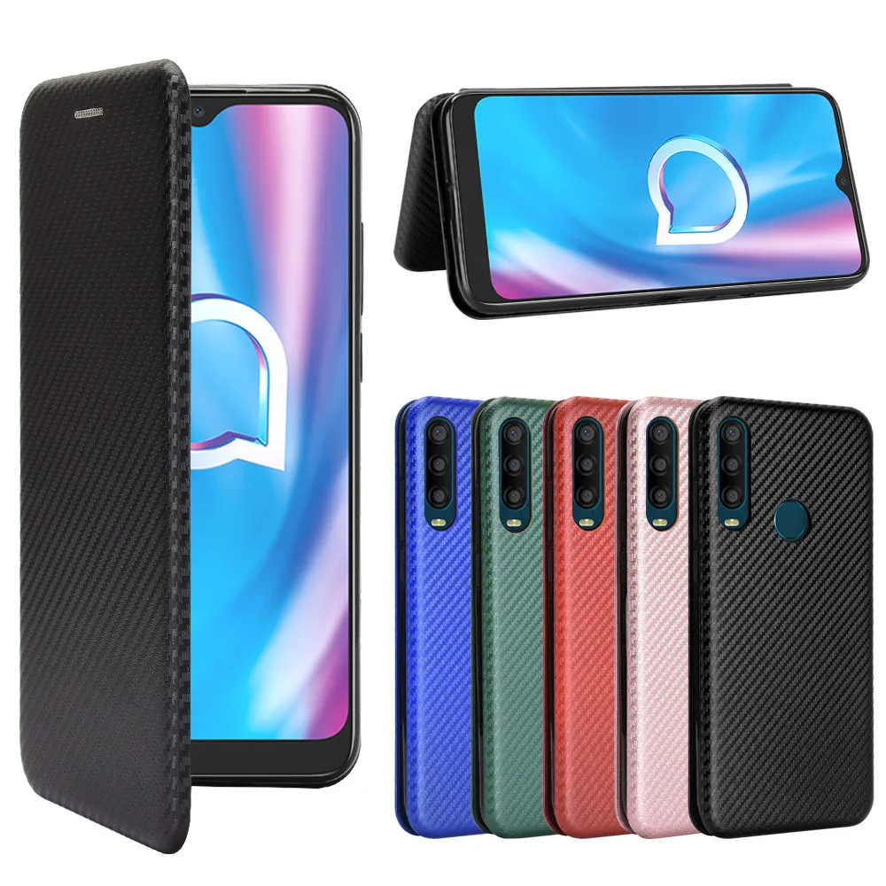 Магнитный чехол-книжка из углеродного волокна для Alcatel 1S 2021, ...