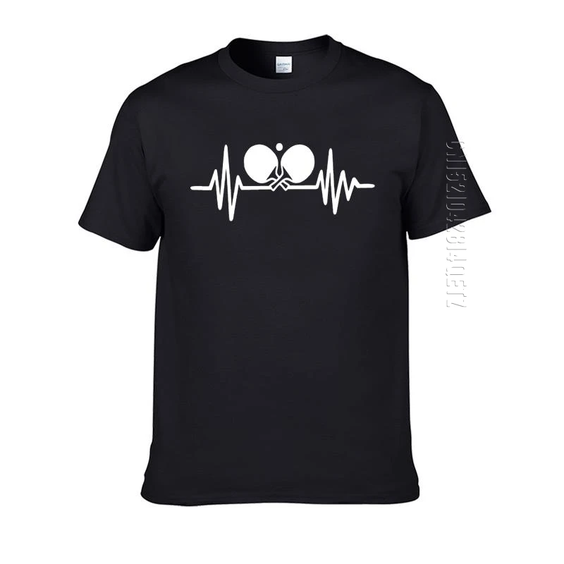 Футболка мужская хлопковая оверсайз с круглым вырезом и принтом сердцебиения для настольного тенниса и пинг-понга