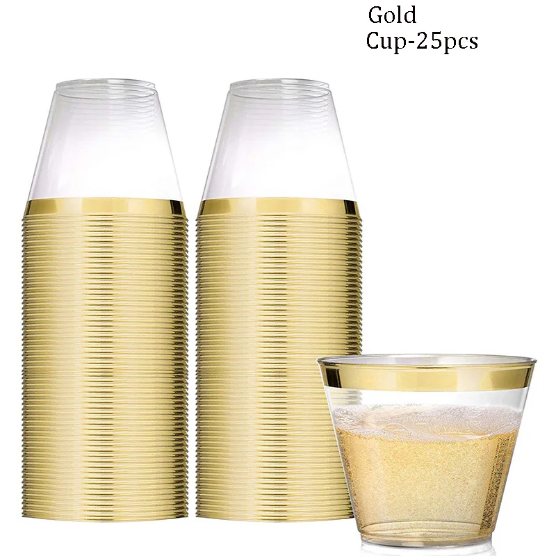 Пластиковый Ужин:Каждый вид розового и золотого цвета посуда, в том числе 20 7,5-дюймовые пластины, 20 10,25-дюймовые пластины, 25 вилки, 25 ножи, 25, ложки, 25 чашки, И 25 салфеток могут вместить 25 гостей. Будь то завтрак, обед или ужин, эти пластиковые банкетные доски могут удовлетворить все ваши потребности.