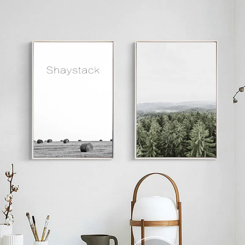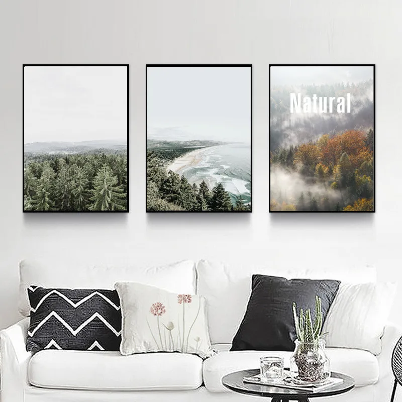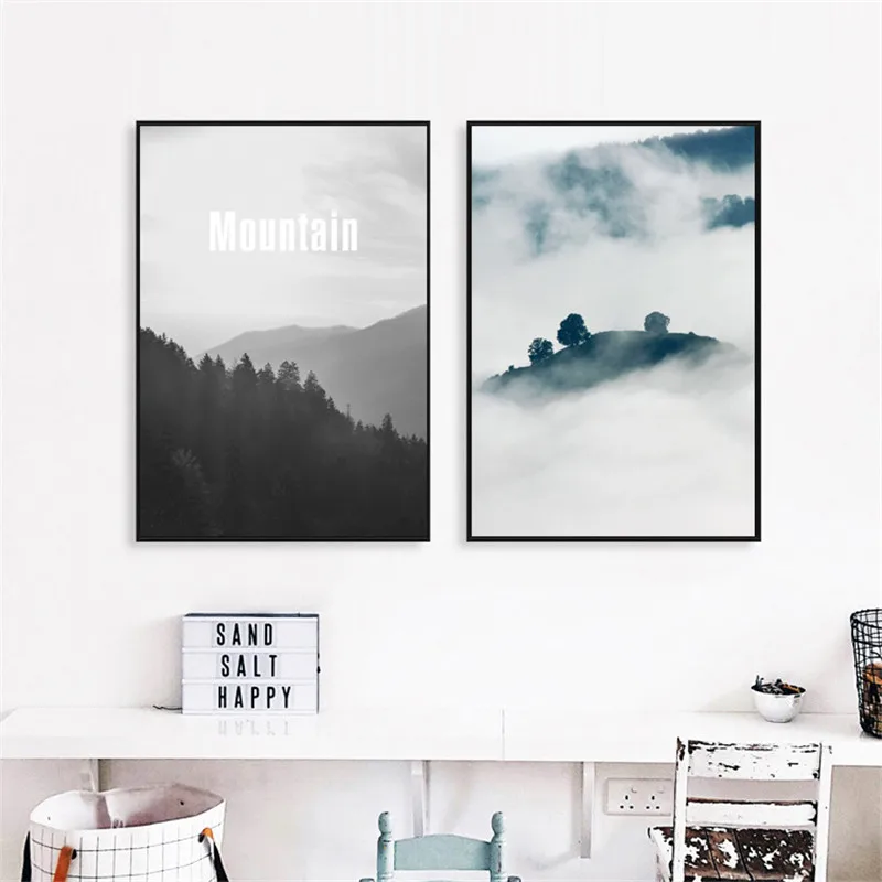 Черный и белый природный ландшафт пляжное дерево туман и луга Холст Картина Настенная картина постер украшение для гостиной