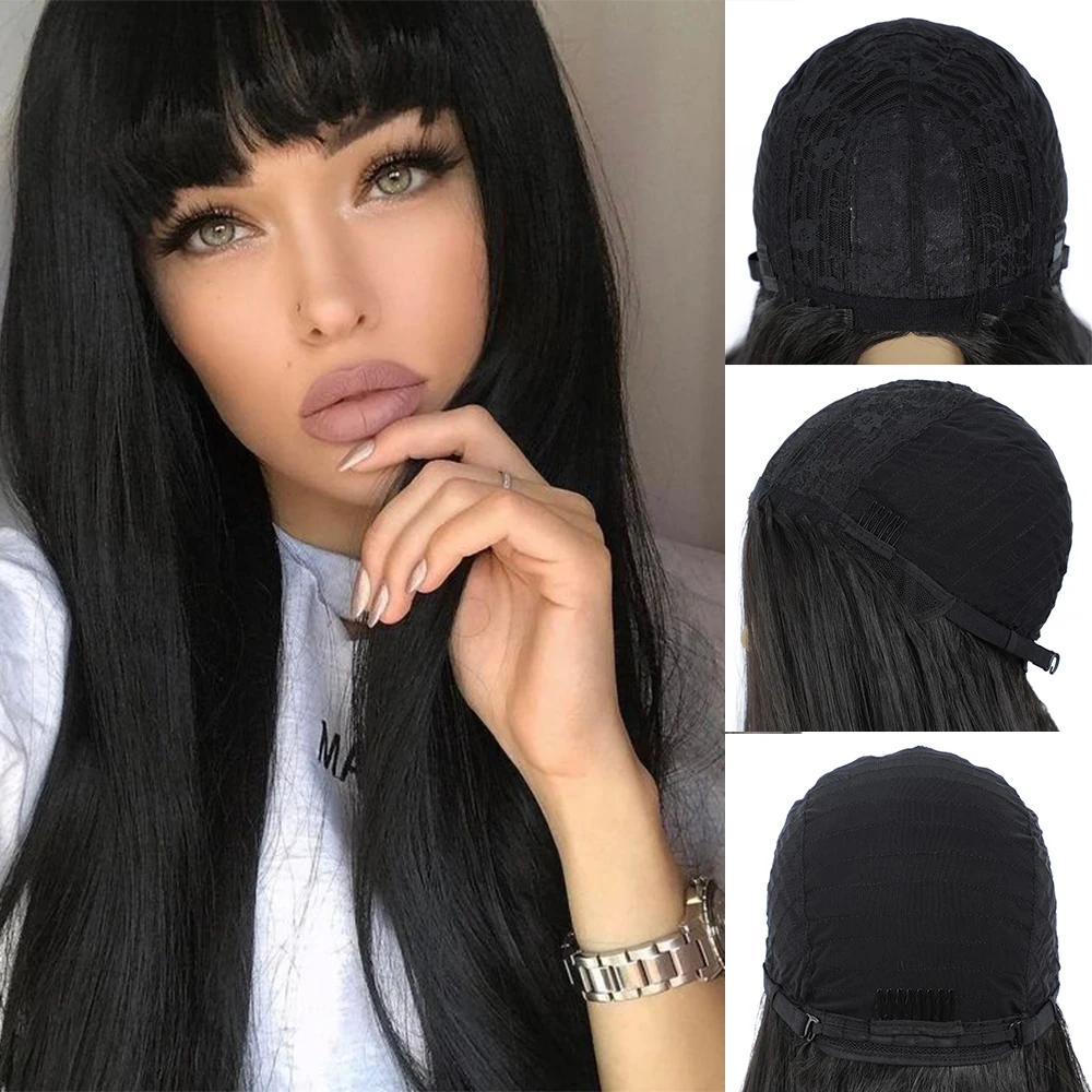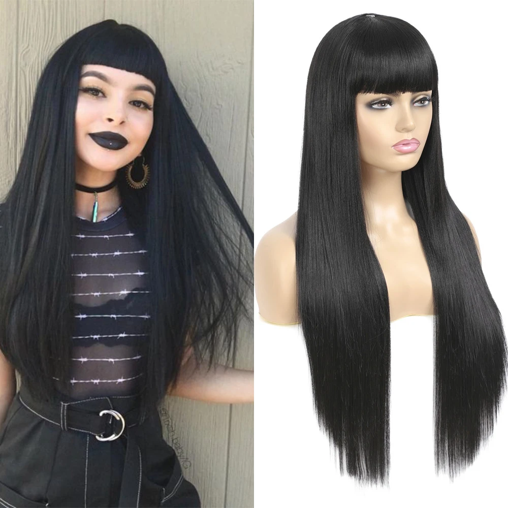 Прямые синтетические парики с челкой черные цветные длинные волосы для черных женщин слой машины парик высокая температура ежедневно парик