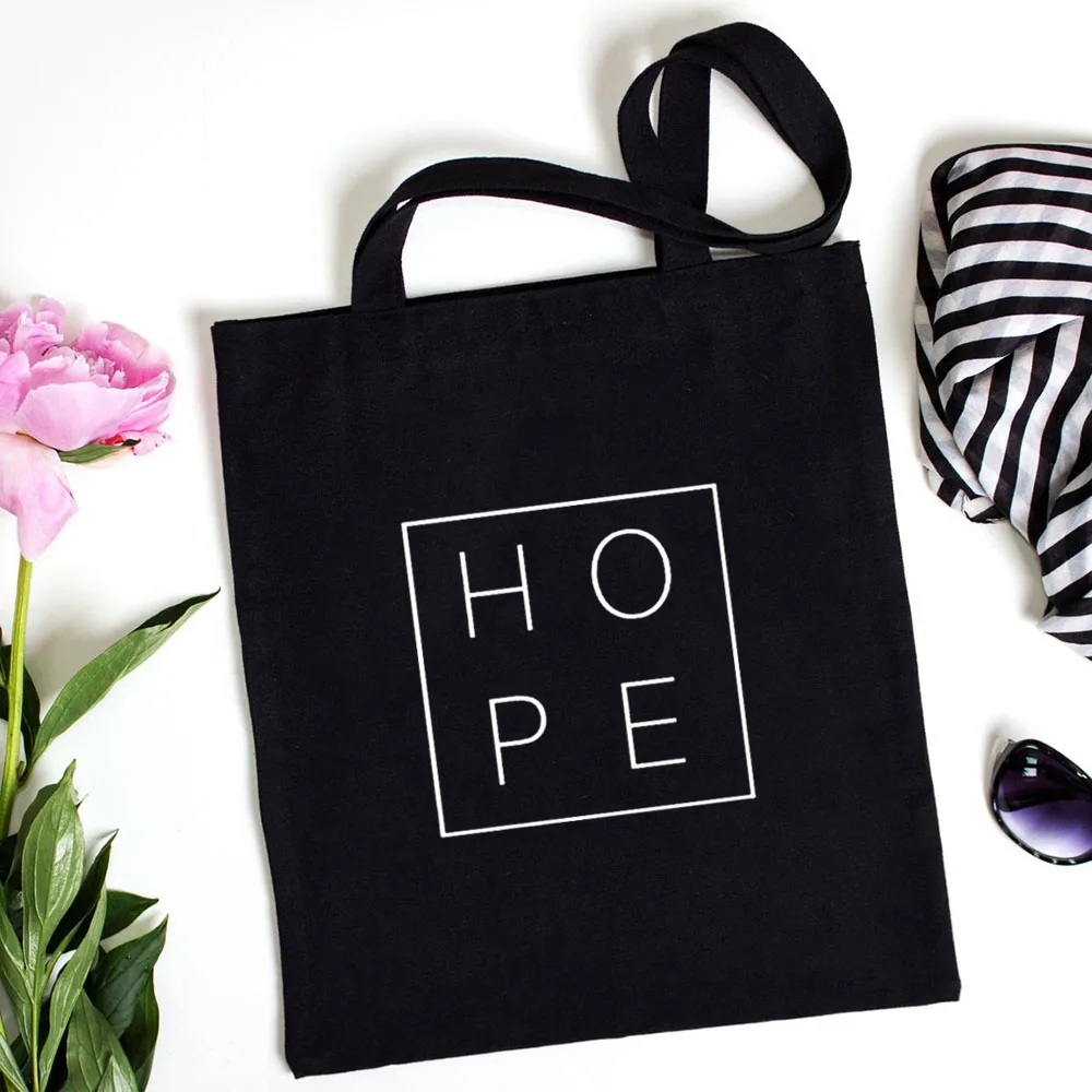 Сумка-тоут женская, тканевая, многоразовая, с буквенным принтом