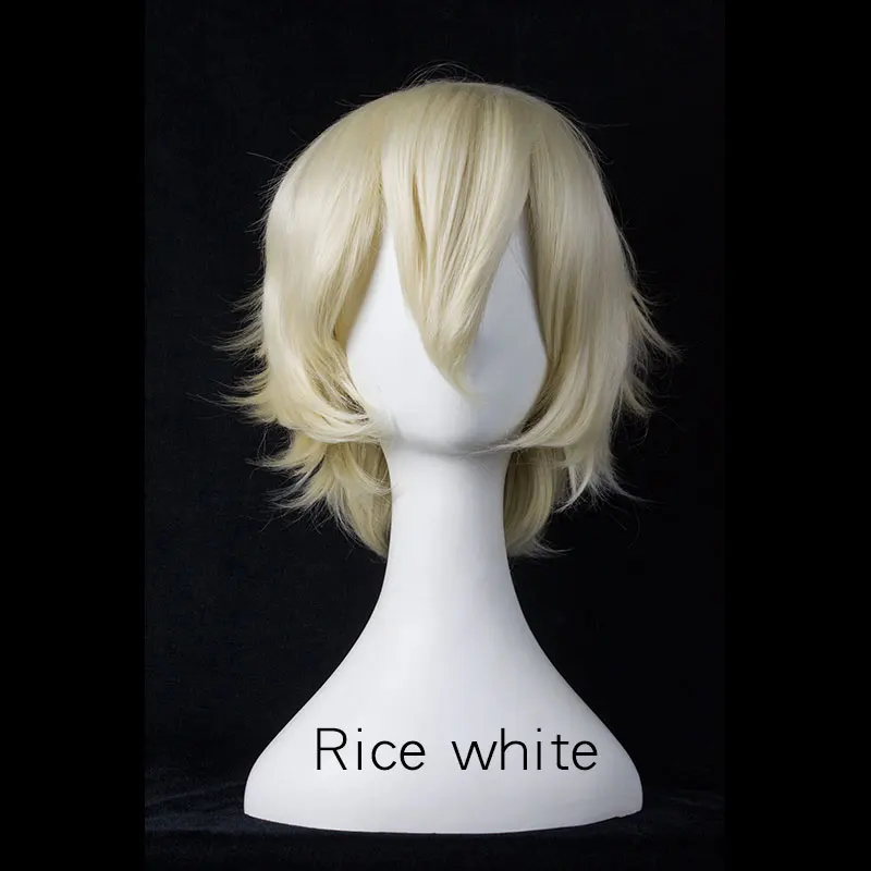 30 см короткий парик Цвет: черный, белый, пурпурный, синий и красный цвета, высокотемпературное волокно, синтетический костюм вечерние Косплэй мульти 17 видов цветов + парик Кепки