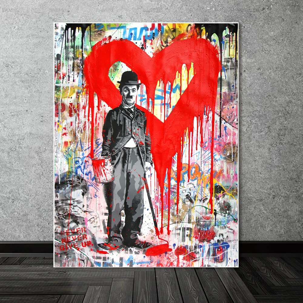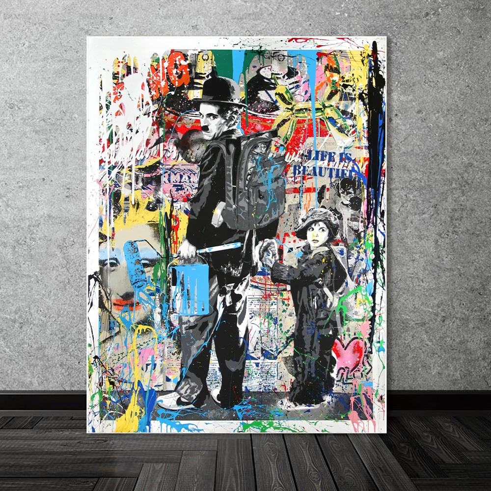 Абстрактное Искусство граффити уличное искусство Чаплин Живопись Холст Плакаты печать Настенный декор искусство для комнаты декор