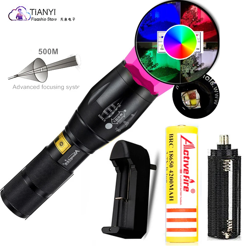 Телескопический фокусирующий Многофункциональный сильный светильник вой светильник A100 красныйбелыйсинийзеленый четырехцветный источник света для дома фонарик RGB