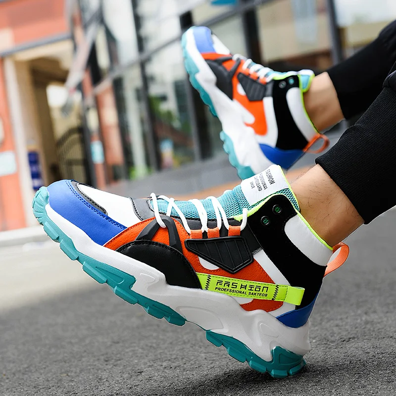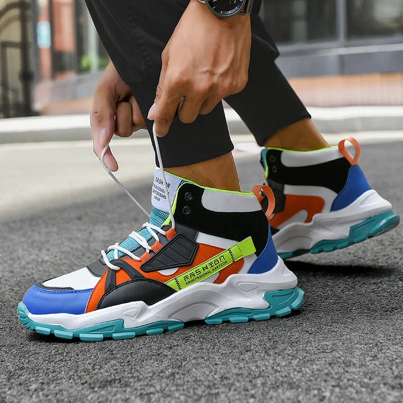 Зимняя мужская обувь для бега с высоким берцем, удобная спортивная обувь, Модная молодежная трендовая прогулочная спортивная обувь, уличные массивные кроссовки