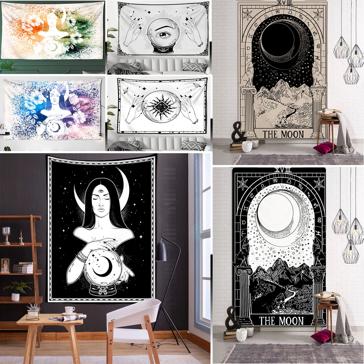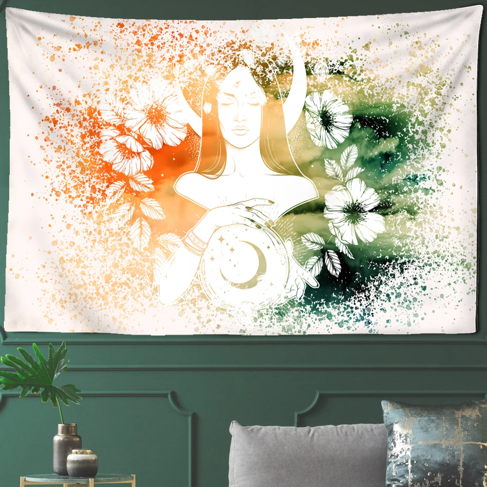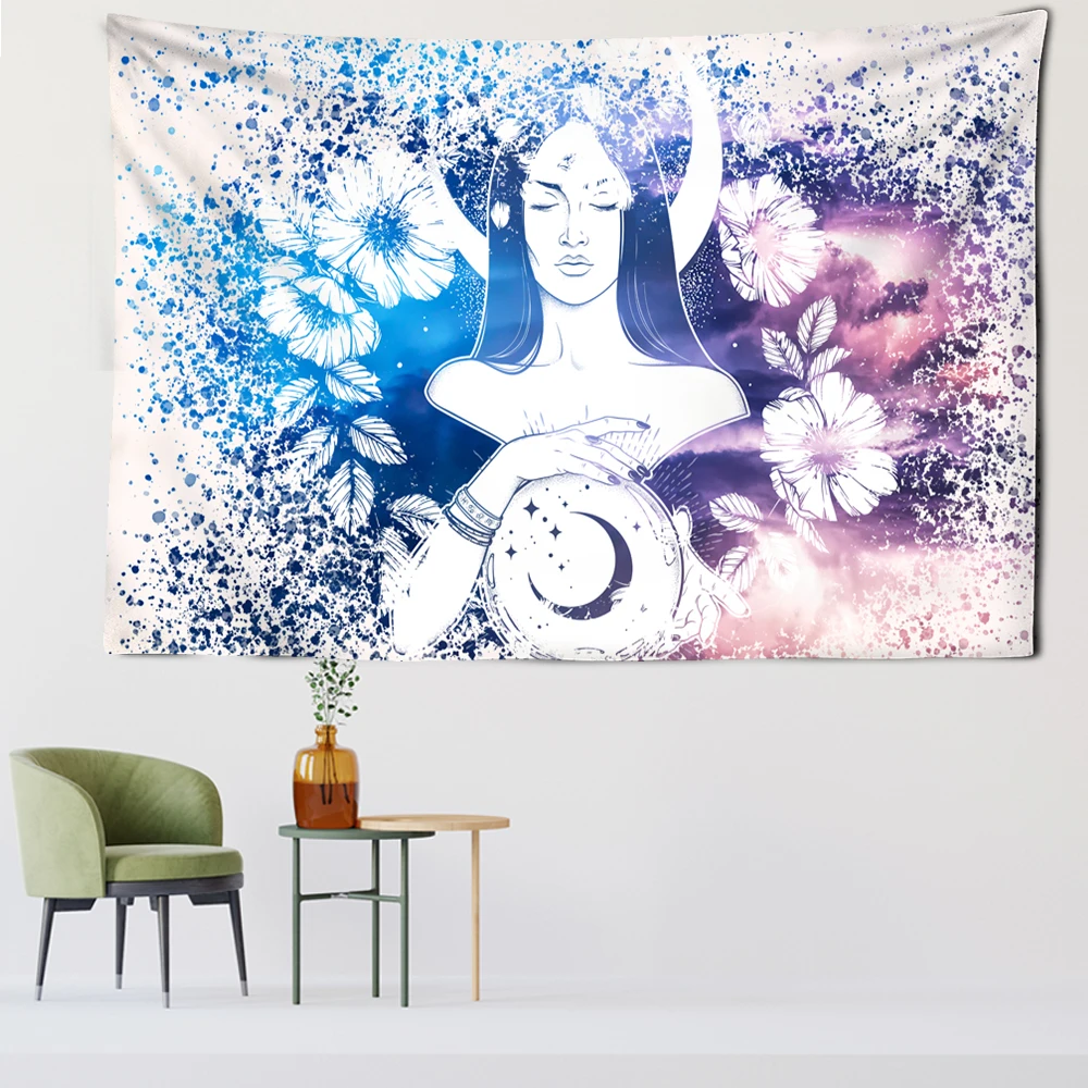 Психоделическая женщина гобелен с Луной цветок настенный комнатный ковер небо общежитие гобелены искусство украшения дома Таро гобелен