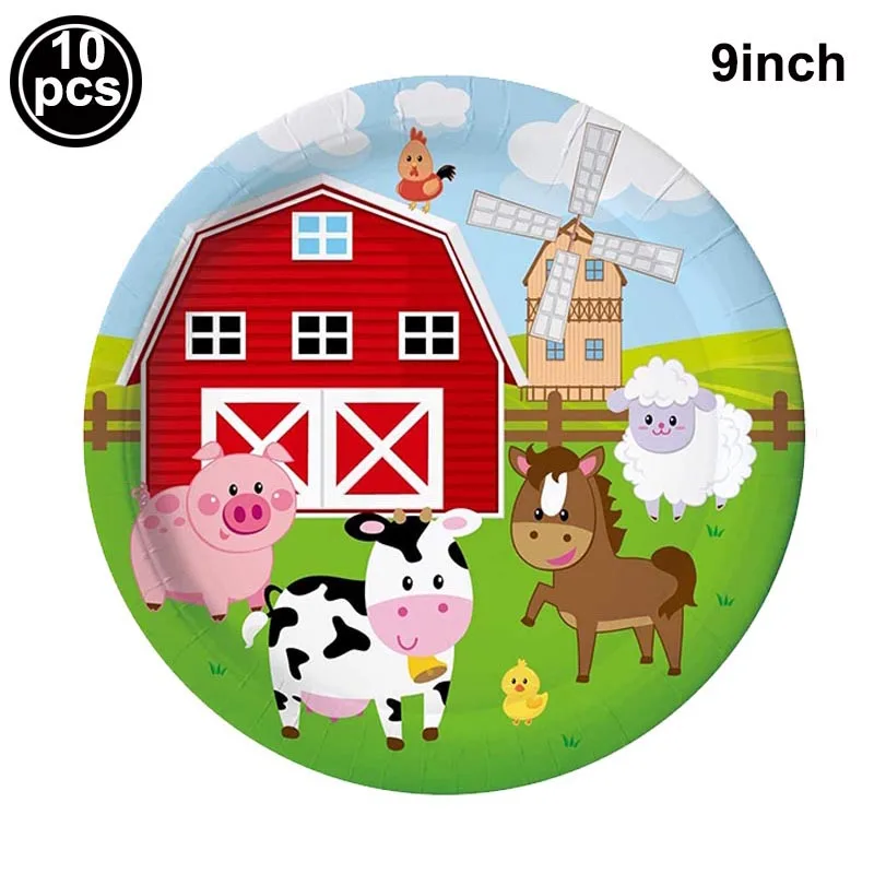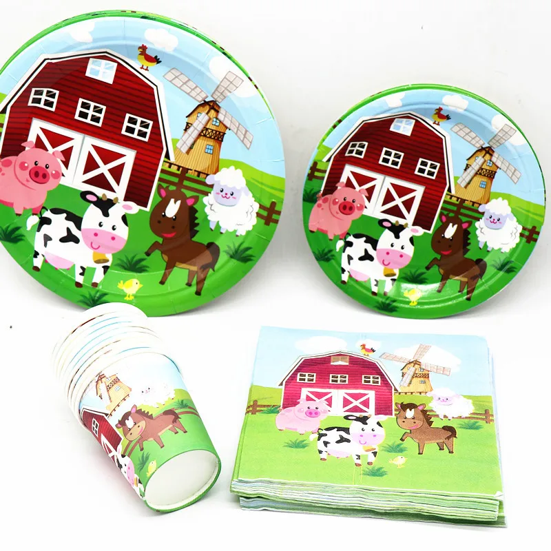 Ферма Животные тема вечерние Декор одноразовая посуда с животными Бумага пластина соломенная чашка Салфетка скатерть зоопарка корову счастливый день рождения баннер