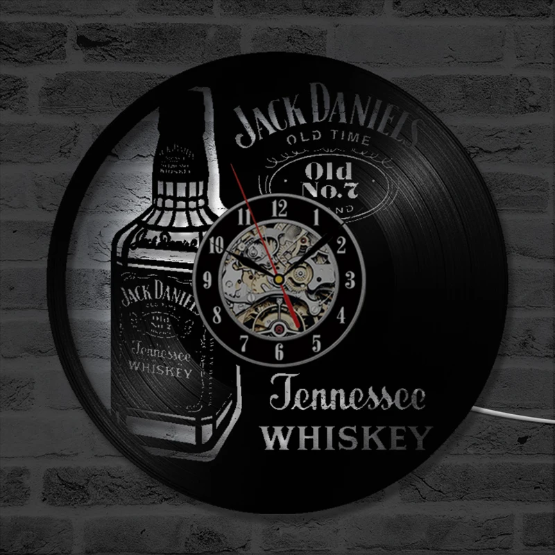 Настенные часы с бутылкой виски, пива, виниловые часы для пива, современный дизайн, винтажные настенные часы со светодиодным освещением, клок