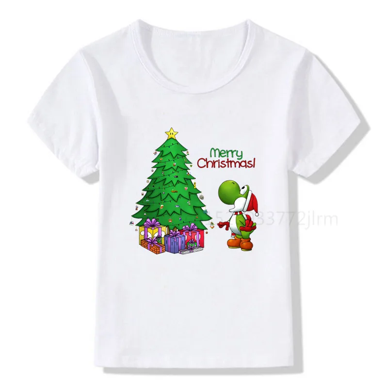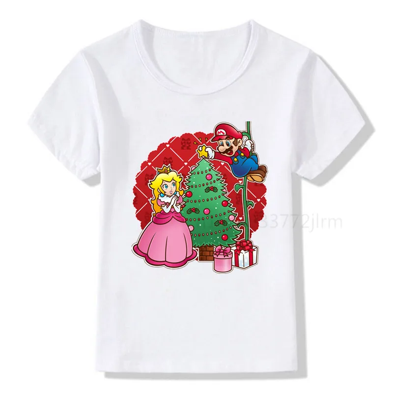 Детская футболка с рисунком рождественской елки Марио и принцессы персиковый принт детская одежда футболки для мальчиков и девочек Рождественский подарок футболка для малышей