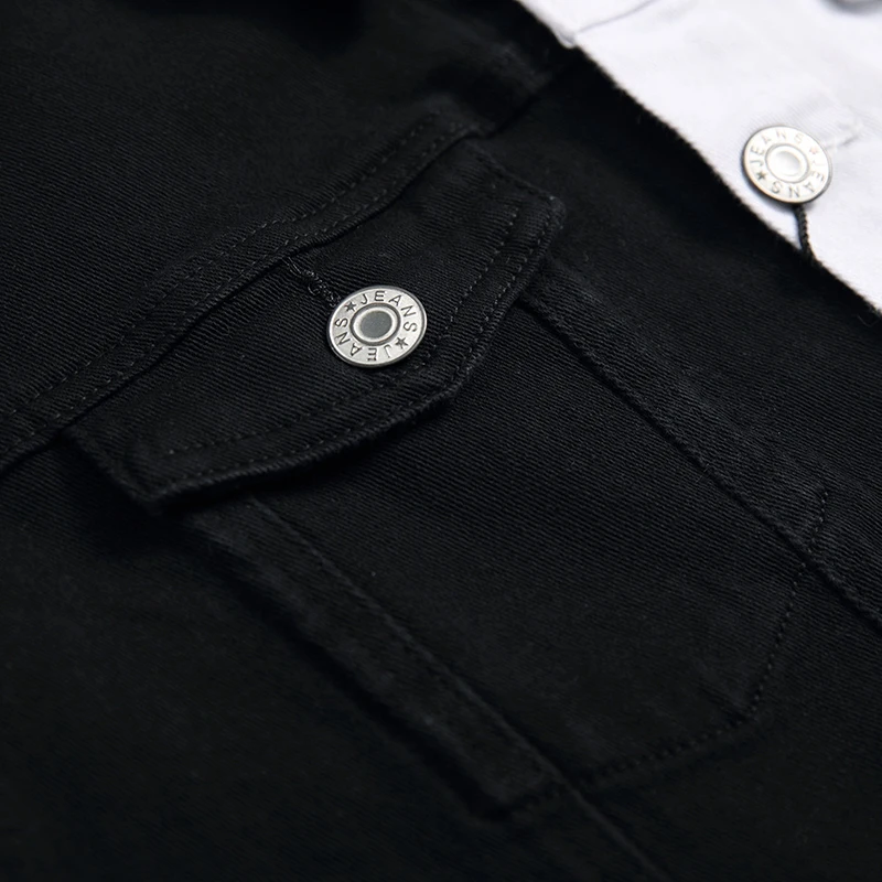 Мужская джинсовая куртка, черная, белая, двухцветная, в стиле пэчво...