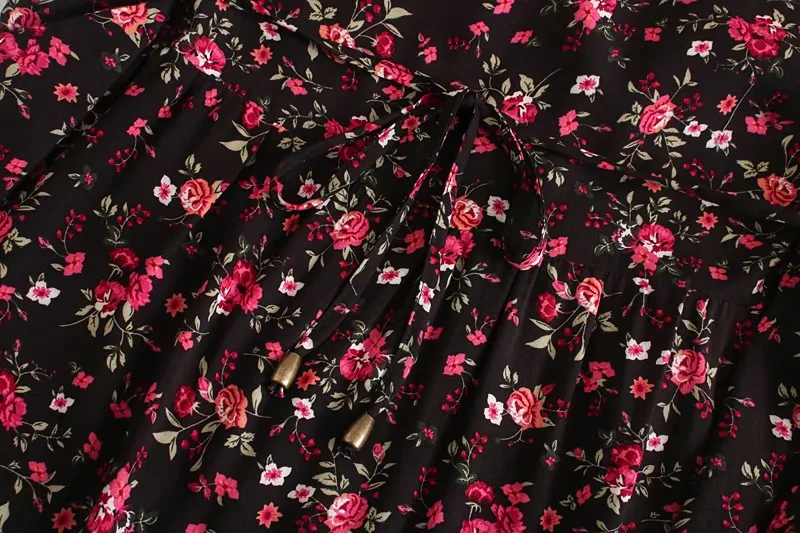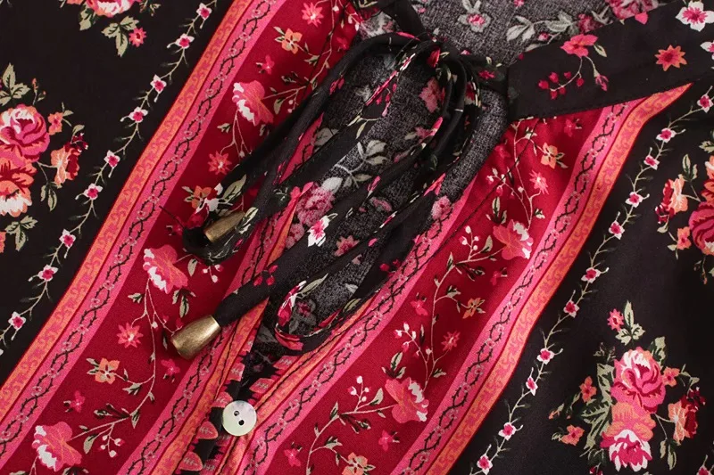 Женская богемная бандажная рубашка с открытыми пуговицами, V-образным вырезом и цветочным принтом, праздничная женская блузка контрастных цветов с длинным рукавом, топы, пляжные Топы