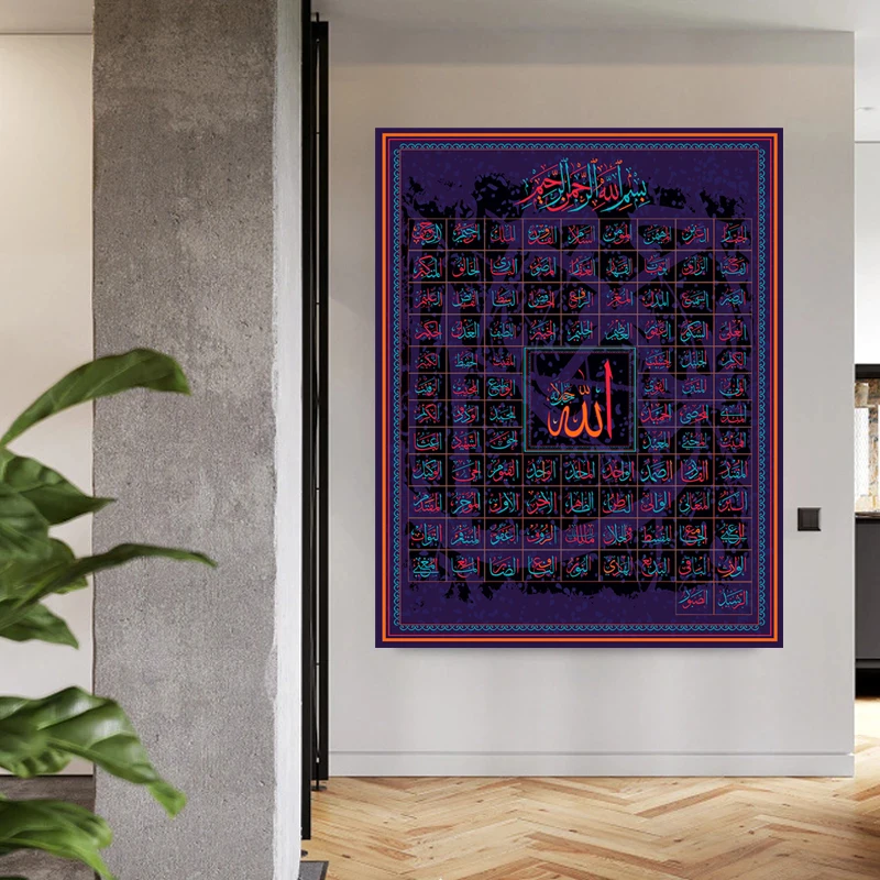 Картина маслом, мусульманская каллиграфия, 99 названий, Золотая картина, Картина на холсте, украшение для мечети Алматы, плакаты и принты