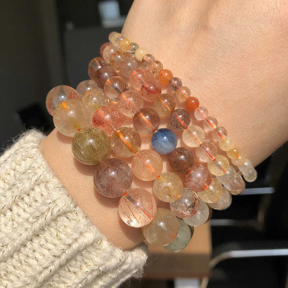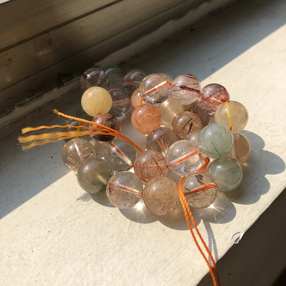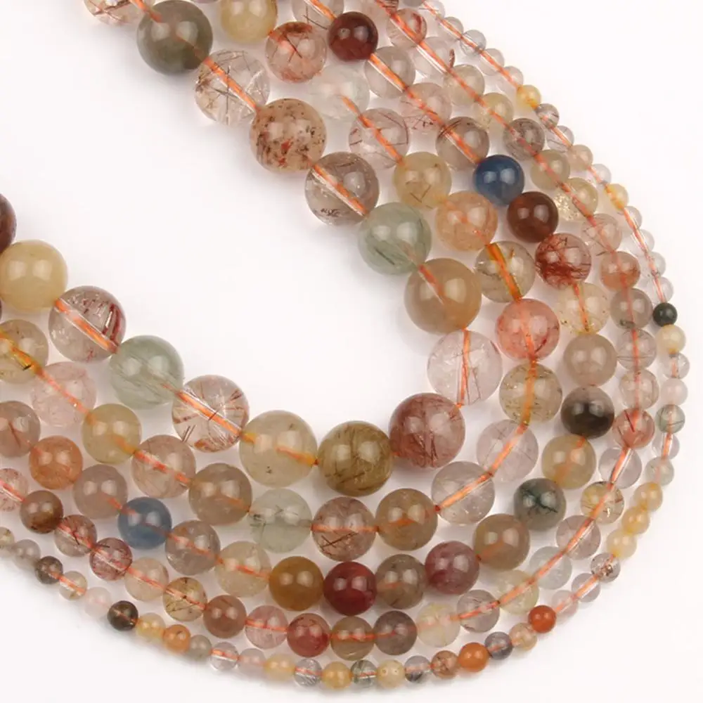 Натуральные разноцветные рутилированные кварцевые бусины, круглые каменные бусины-разделители россыпью для изготовления ювелирных изделий, браслетов сделай сам, ожерелий 4-12 мм