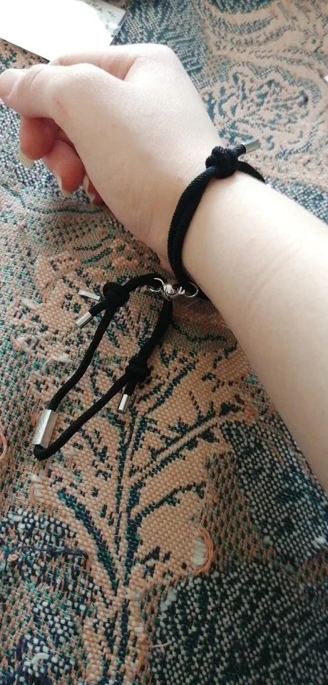 Браслеты пришли довольно таки быстро. Веревка очень красивая и прочная,надеюсь порвётся не скоро) Магниты очень хорошо притягиваются и крепко. Товаром довольна)
