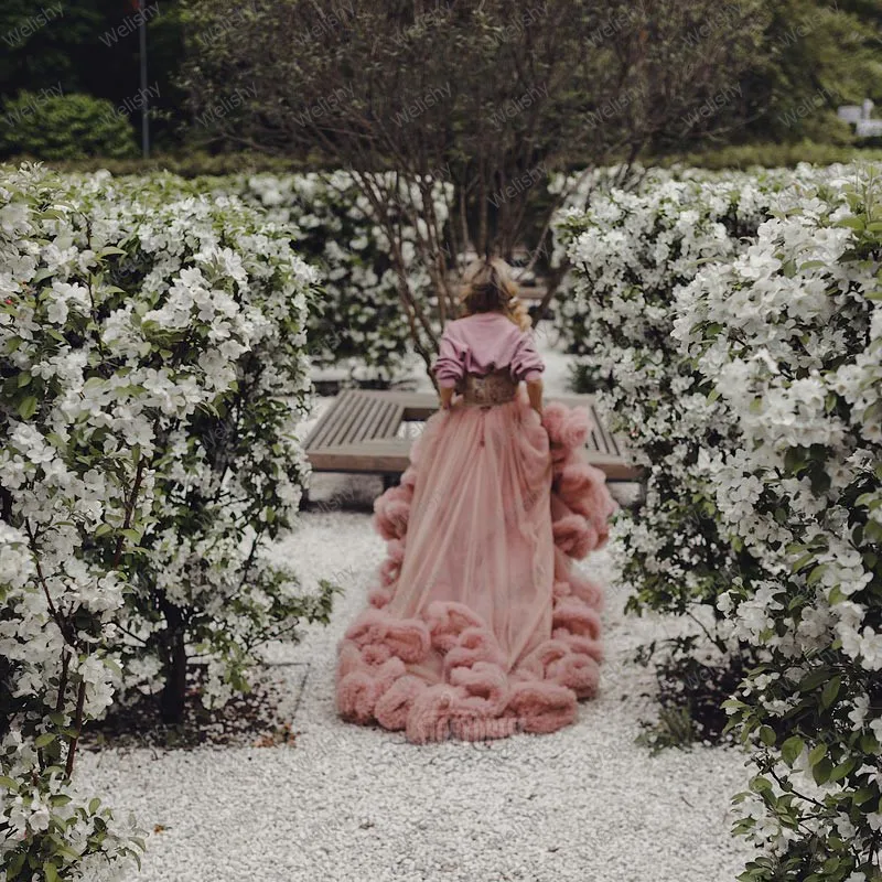 Милое розовое Тюлевое платье для беременных женщин очень Пышное дли...
