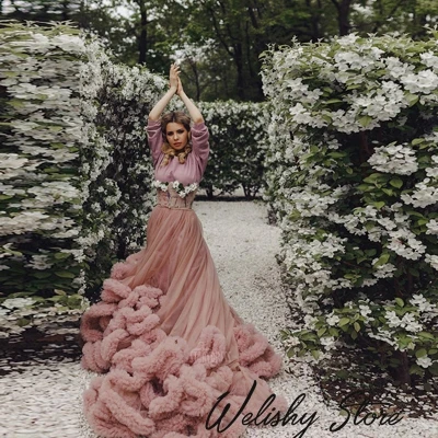 Свадебные пушистые тюлевые халаты для беременных на заказ небесно-г...