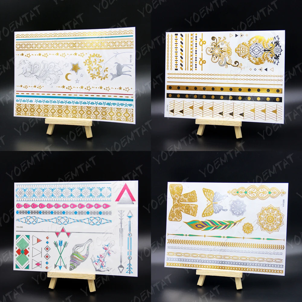 Водонепроницаемый временная татуировка стикер металла золотого и серебряного цвета с изображением цветка мандалы хна ювелирные изделия браслет флеш-тату в богемном стиле арт поддельные татуировки