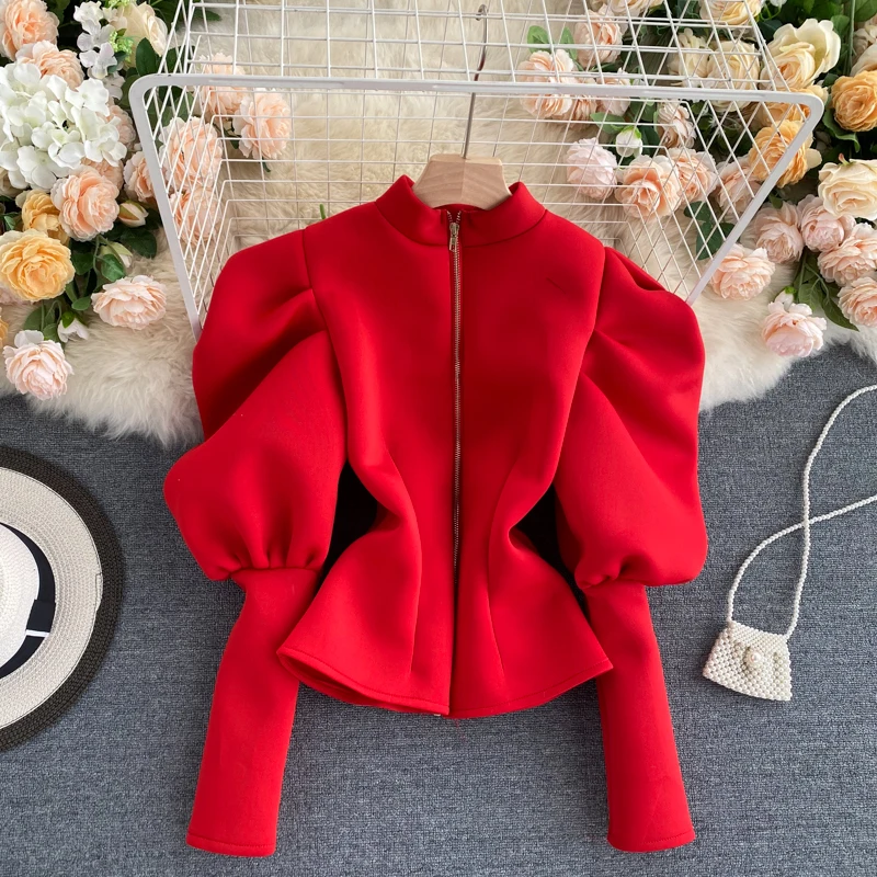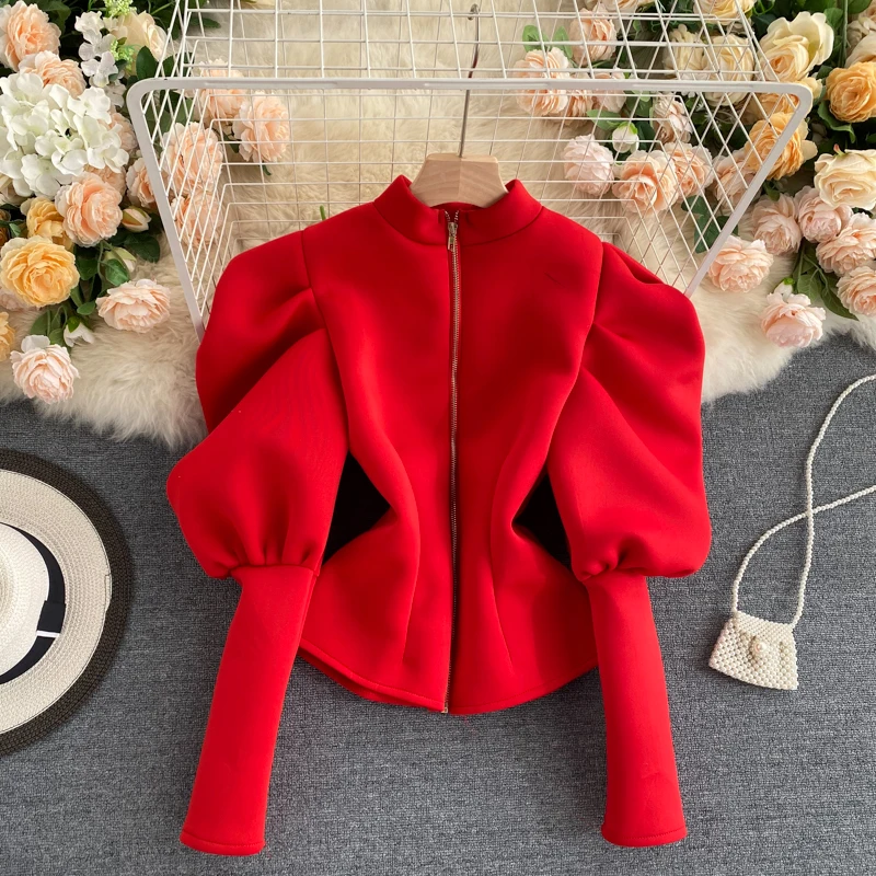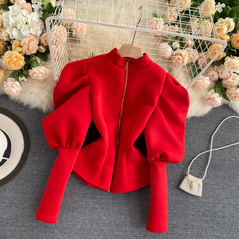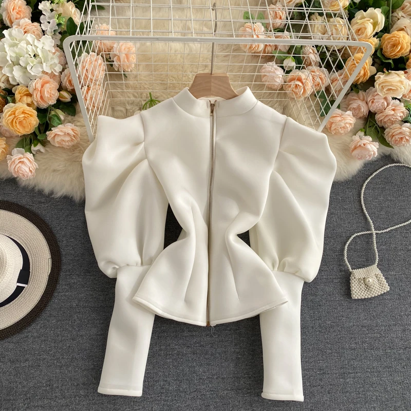 Женский кардиган ALPHALMODA, на молнии, с пышными рукавами, облегающий, однотонный