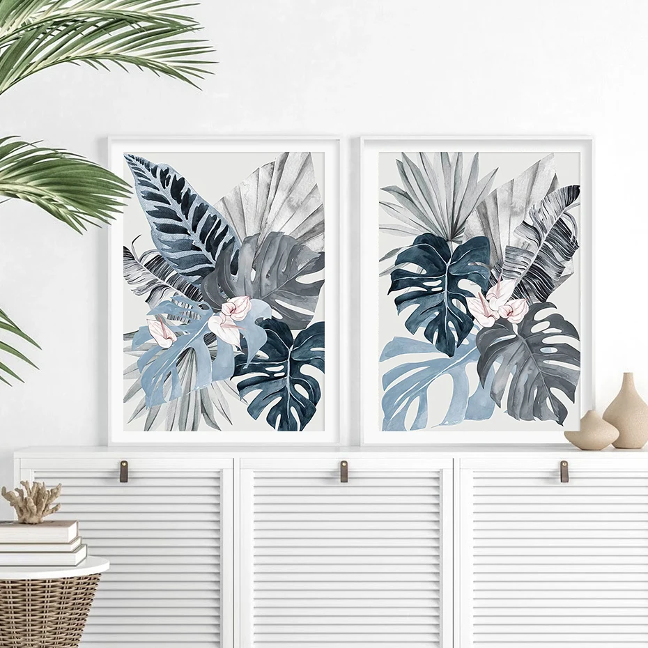 Современная элегантная Картина на холсте с изображением цветов и растений, тропическая синяя пальма, Настенная картина для спальни, украшение для дома без рамки