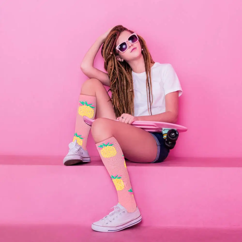Компрессионные носки для мужчин, женщин, мужчин, до колена, для бега, спорта, счастливый стиль, нейлон, для улицы, путешествия, гонки, против варикозного расширения вен, Edema