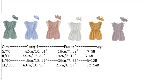 Комбинезон для новорожденных девочек, однотонный Кружевной ромпер с расклешенными рукавами, с повязкой на голову, одежда на лето