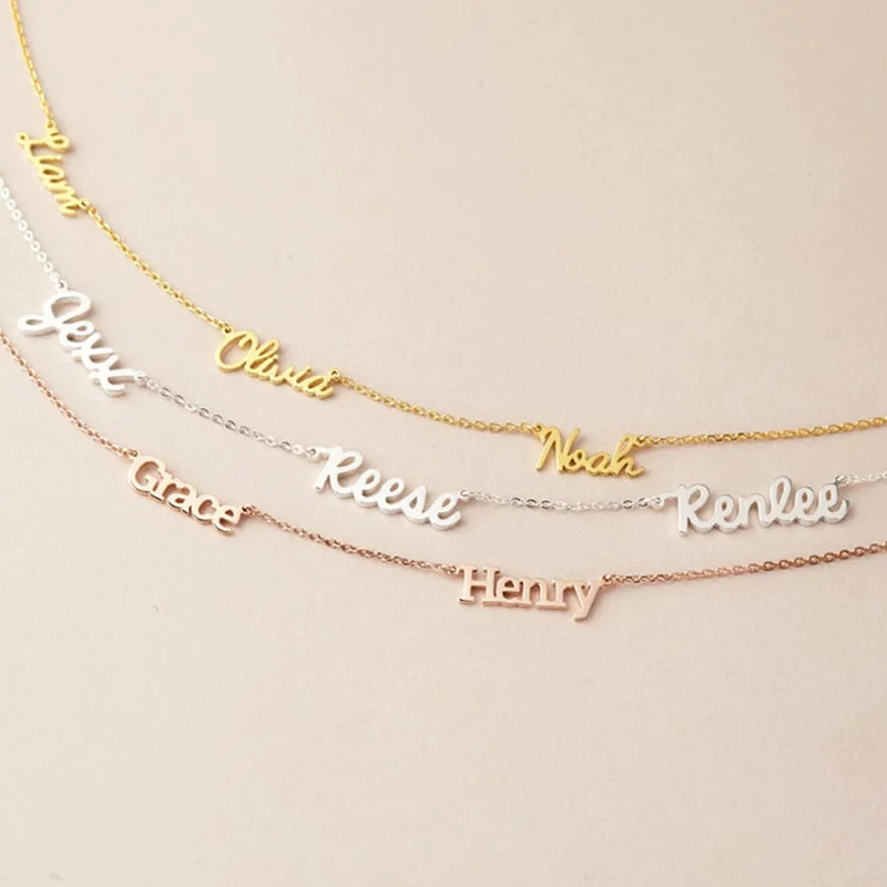 Индивидуальное ожерелье с тремя именами, персонализированное золотое ожерелье из нержавеющей стали с именной табличкой, Очаровательное ожерелье, подарок для женщин, ювелирные изделия на день рождения